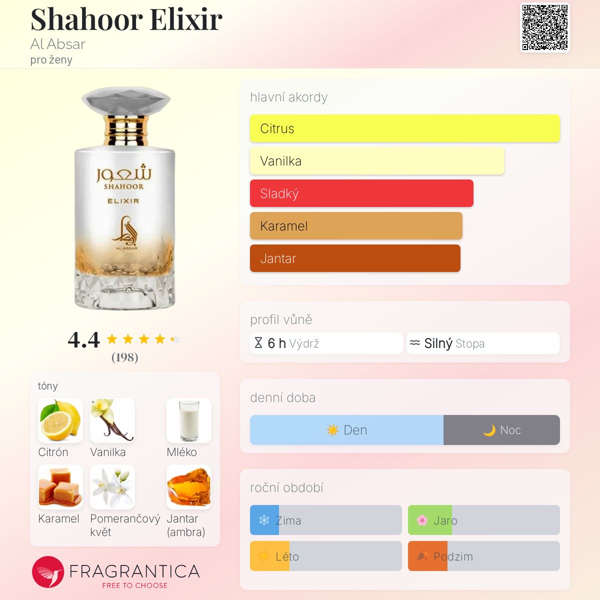 Shahoor Elixir podle Al Absar je vůně pro ženy. Shahoor Elixir byla spuštěna během 2020. Vrchní tóny jsou Citrón, Karamel a Rum; střední tóny jsouMléko a Pomerančový květ ; základní tóny jsou Vanilka, Jantar (ambra), Pižmo a Benzoin.