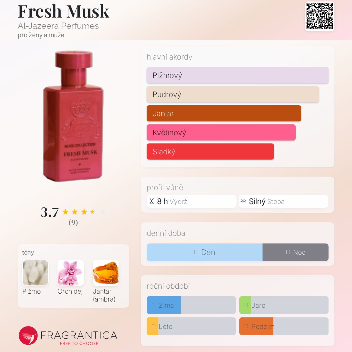 Fresh Musk podle Al-Jazeera Perfumes je Floral vůně pro ženy a muže. Fresh Musk byl/a uveden/a v roce 2013.