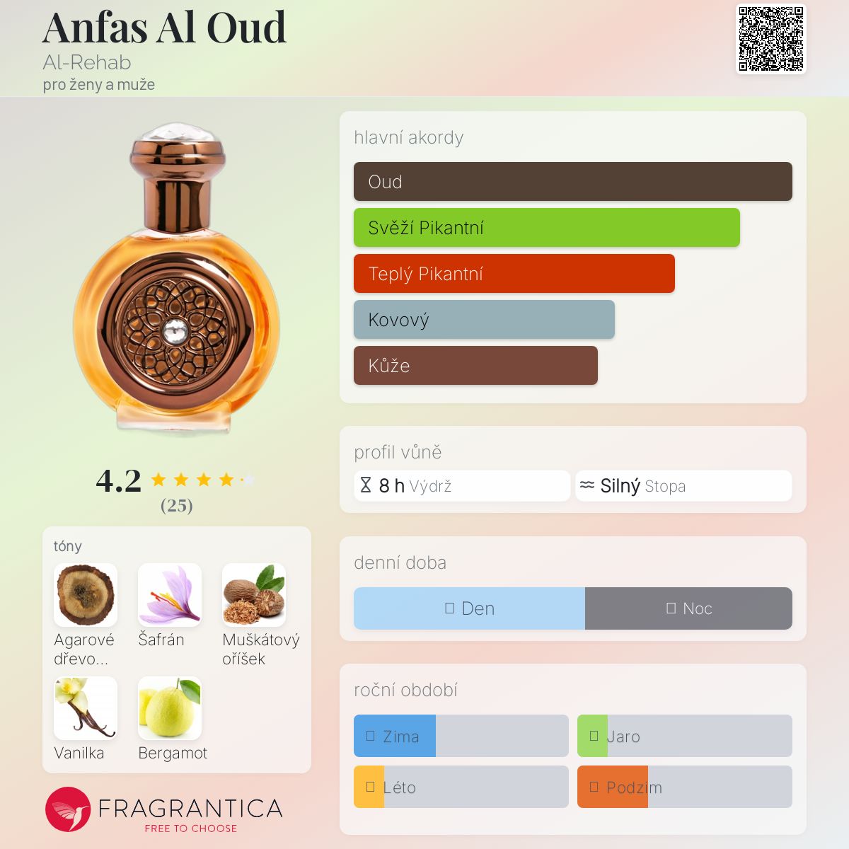 Anfas Al Oud podle Al-Rehab je Orientální Woody vůně pro ženy a muže. Anfas Al Oud byl/a uveden/a v roce 2014.