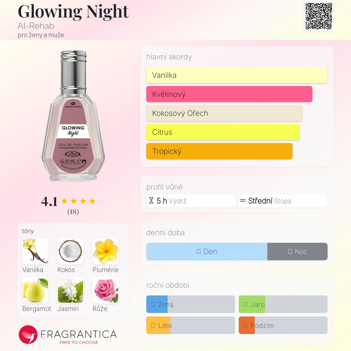 Glowing Night podle Al-Rehab je Floral vůně pro ženy a muže. Glowing Night byl/a uveden/a v roce 2021.