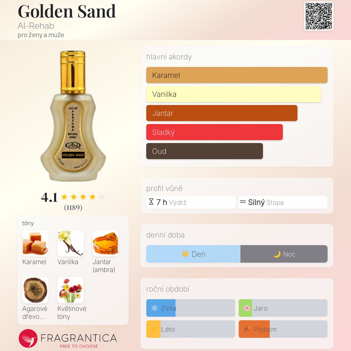 Zlatý písek je jedním z opravdových gurmánů Al Rehabu, spolu se Soft, Chocomusk a Dalal. I když Golden Sand sdílí několik tónů s Golden, pokud uvažujete o jedné z těchto dvou, Golden je ta, kterou chcete pro vintage ambery, pryskyřičné květiny, a Golden Sand je gurmánská.