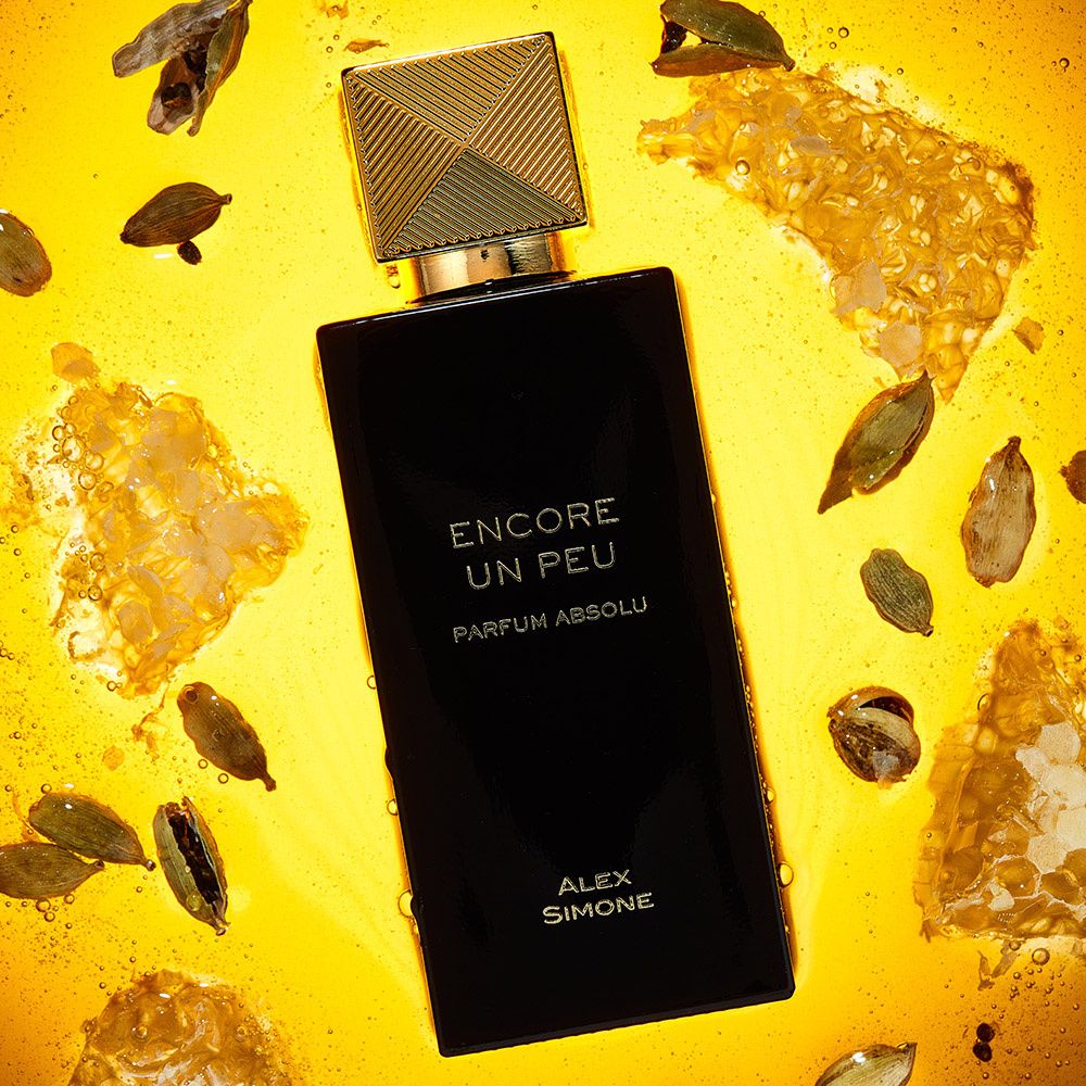 Encore Un Peu Parfum Absolu podle Alex Simone je vůně pro ženy a muže. Encore Un Peu Parfum Absolu byl/a uveden/a v roce 2021. "Nosem" za touto vůní je Bertrand Duchaufour. Vrchní tóny jsou Kardamom a Sladký pomeranč; střední tóny jsouMyrha, Cedr a Kadidlo ; základní tóny jsou Bílý oud, Cypriolový olej a Vetiver.
