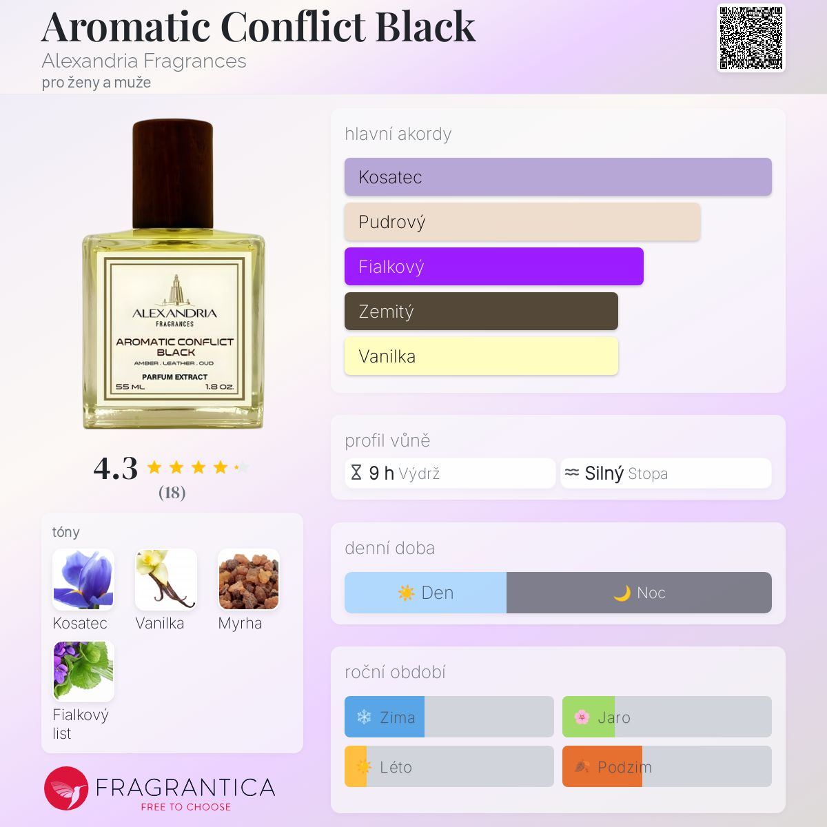 Aromatic Conflict Black podle Alexandria Fragrances je Floral vůně pro ženy a muže. Aromatic Conflict Black byl/a uveden/a v roce 2021.