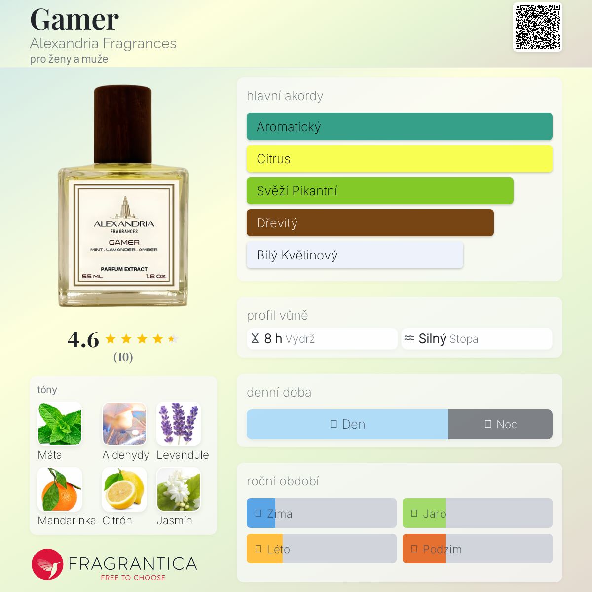 Gamer podle Alexandria Fragrances je Floral Aldehyde vůně pro ženy a muže. Gamer byl/a uveden/a v roce 2019.