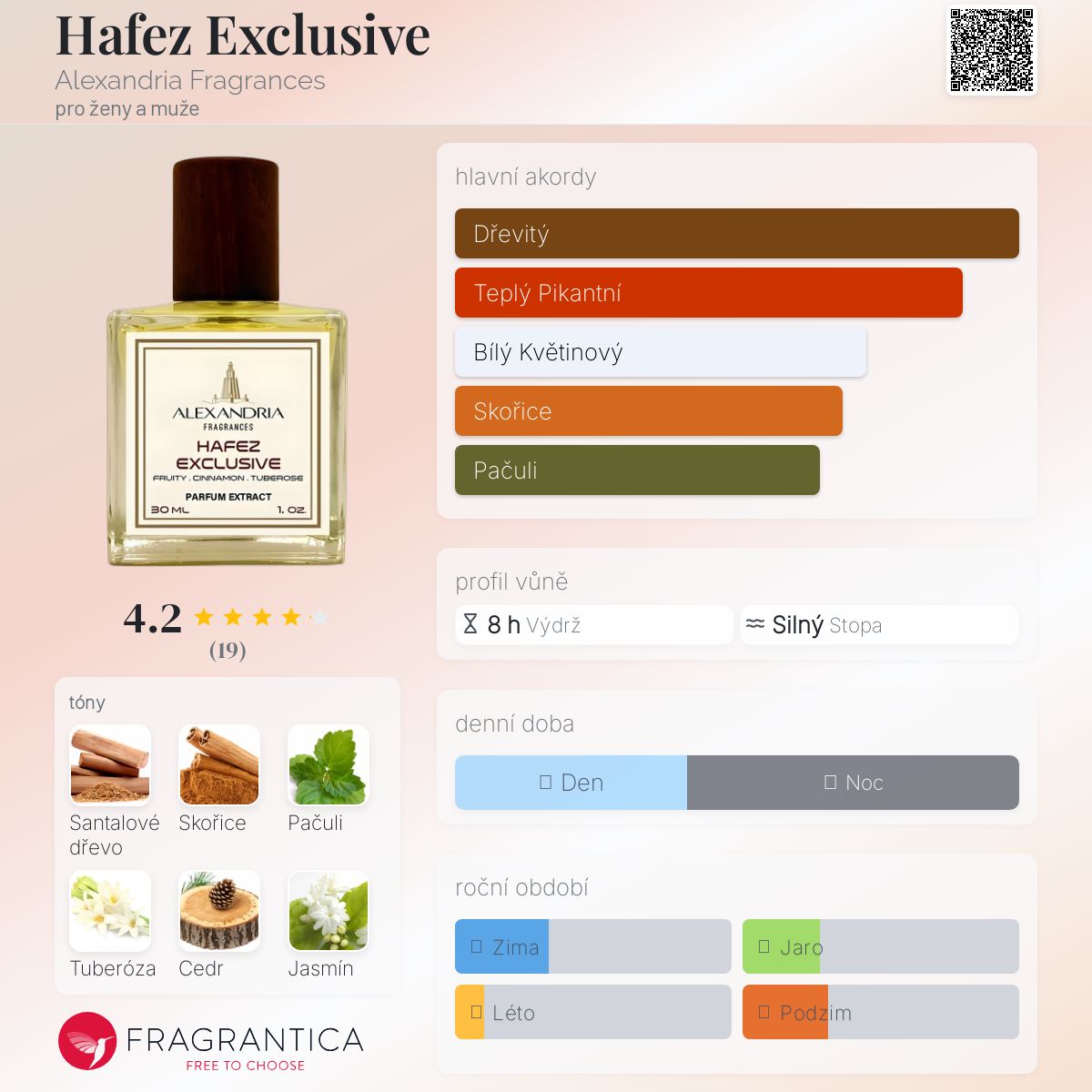 Hafez Exclusive podle Alexandria Fragrances je Aromatic Spicy vůně pro ženy a muže. Hafez Exclusive byl/a uveden/a v roce 2020.