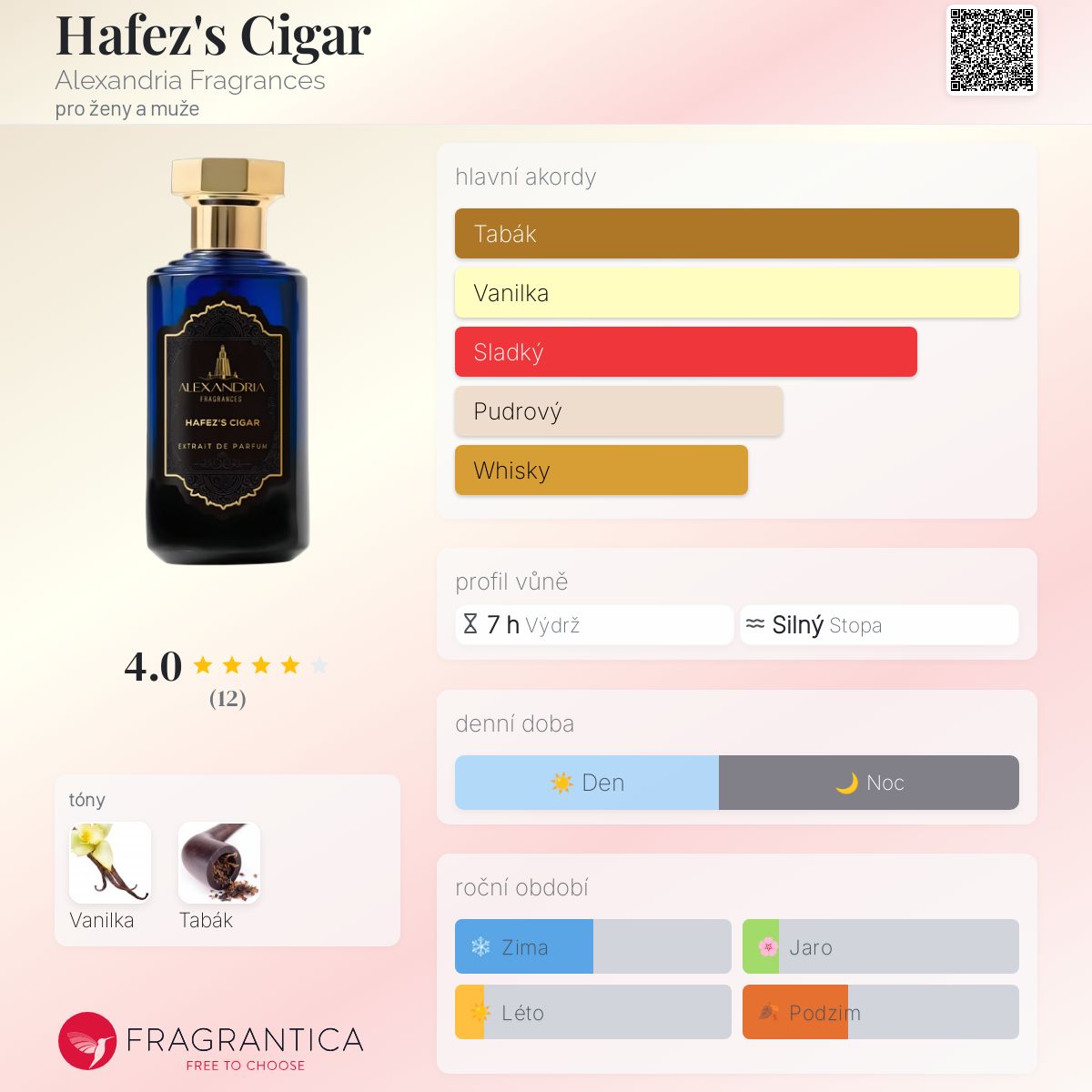 Hafez's Cigar podle Alexandria Fragrances je Aromatic Spicy vůně pro ženy a muže. Toto je nová vůně. Hafez's Cigar byl/a uveden/a v roce 2024.