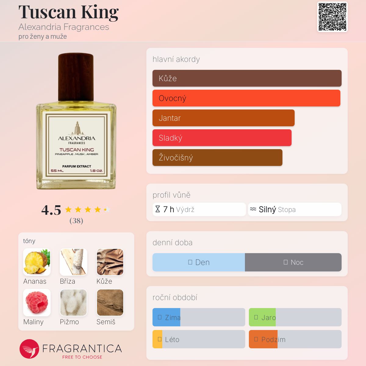 Tuscan King podle Alexandria Fragrances je Leather vůně pro ženy a muže. Tuscan King byl/a uveden/a v roce 2019.