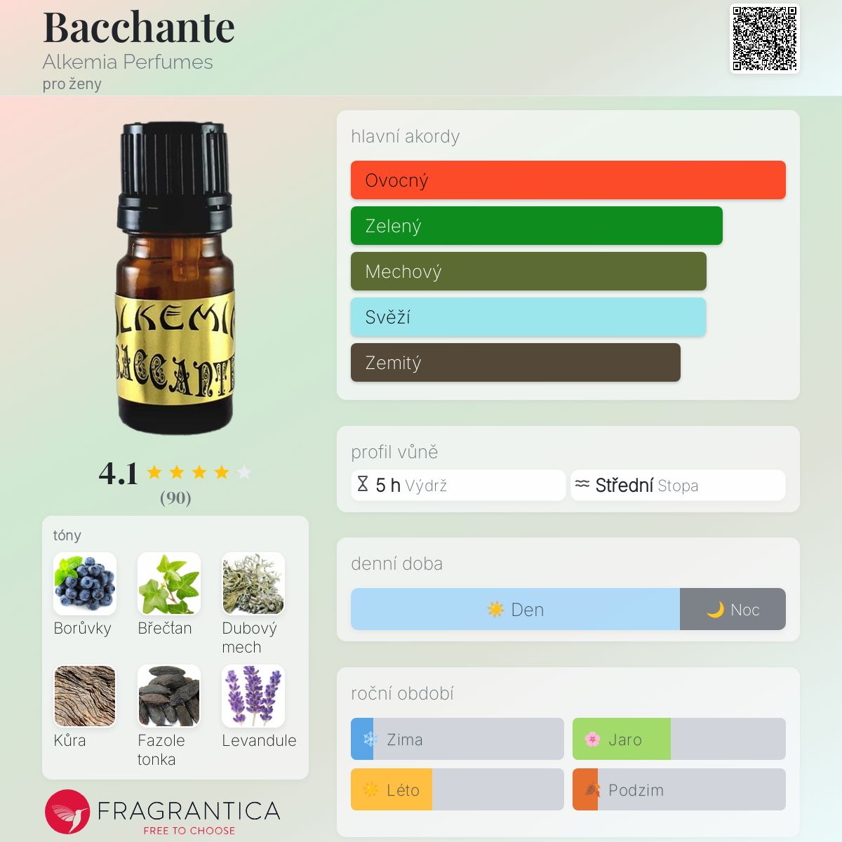 Bacchante podle Alkemia Perfumes je vůně pro ženy. Bacchante byl/a uveden/a v roce 2016. "Nosem" za touto vůní je Sharra Lamoureaux.