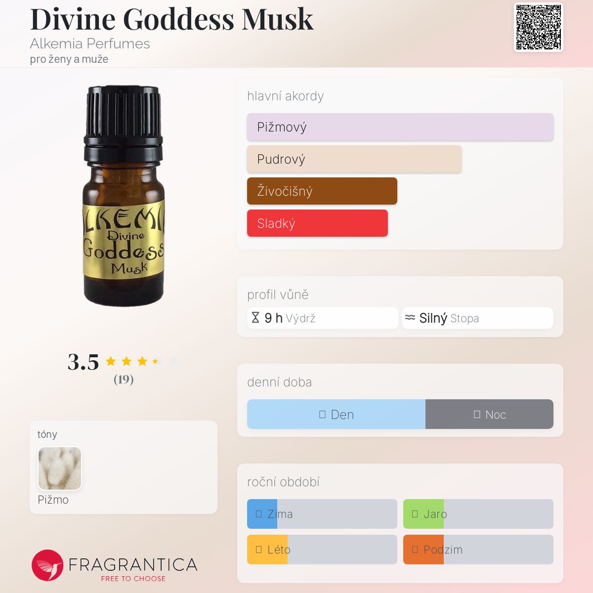 Divine Goddess Musk podle Alkemia Perfumes je vůně pro ženy a muže. Divine Goddess Musk byl/a uveden/a v roce 2012. "Nosem" za touto vůní je Sharra Lamoureaux.