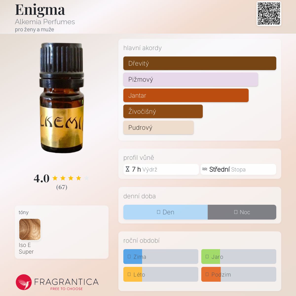 Enigma podle Alkemia Perfumes je vůně pro ženy a muže. Enigma byl/a uveden/a v roce 2018. "Nosem" za touto vůní je Sharra Lamoureaux.