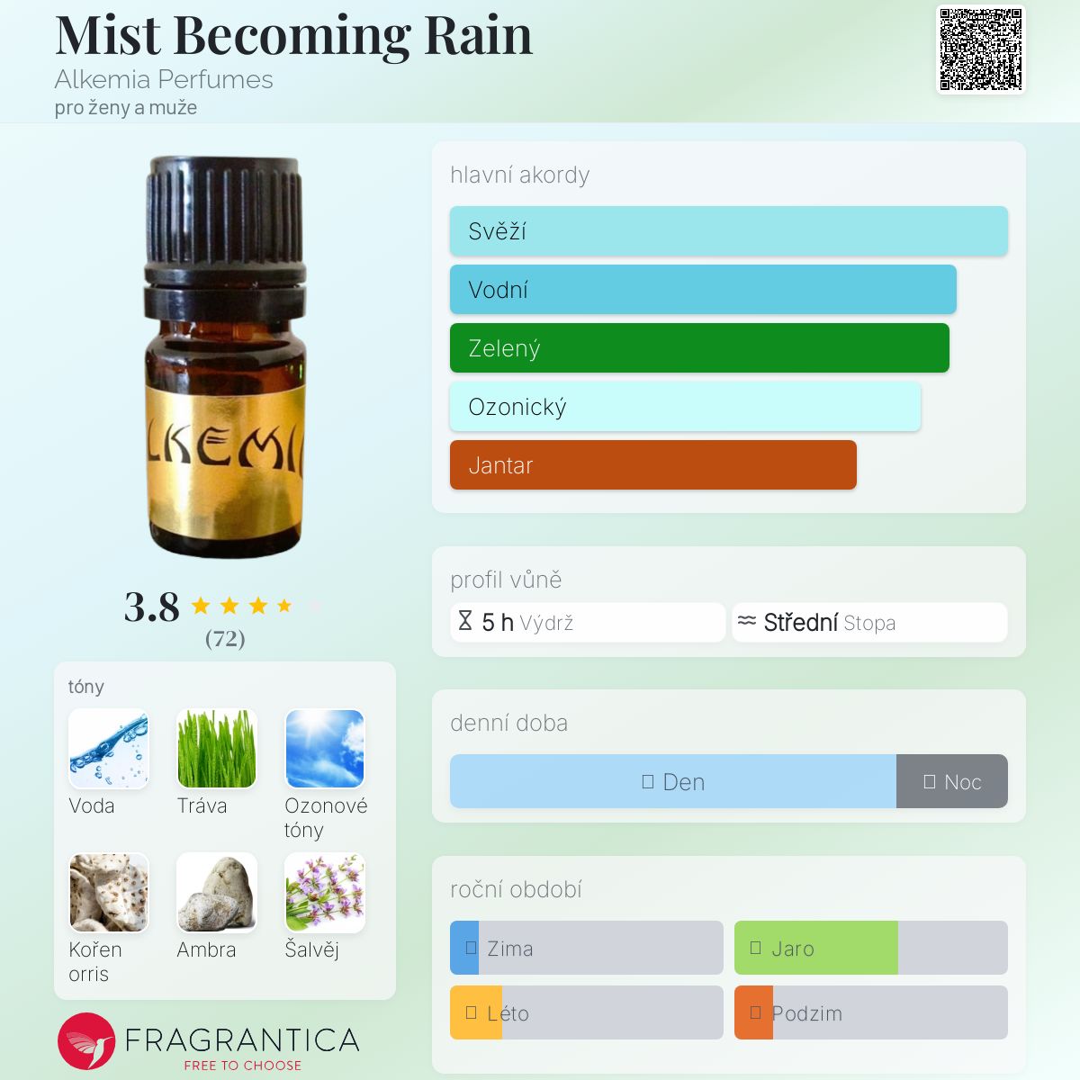 Mist Becoming Rain podle Alkemia Perfumes je vůně pro ženy a muže. Mist Becoming Rain byl/a uveden/a v roce 2018. "Nosem" za touto vůní je Sharra Lamoureaux.