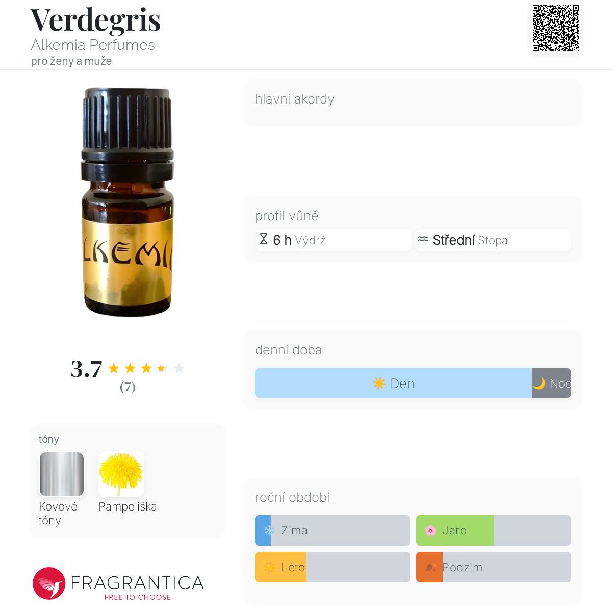 Verdegris podle Alkemia Perfumes je vůně pro ženy a muže. "Nosem" za touto vůní je Sharra Lamoureaux.