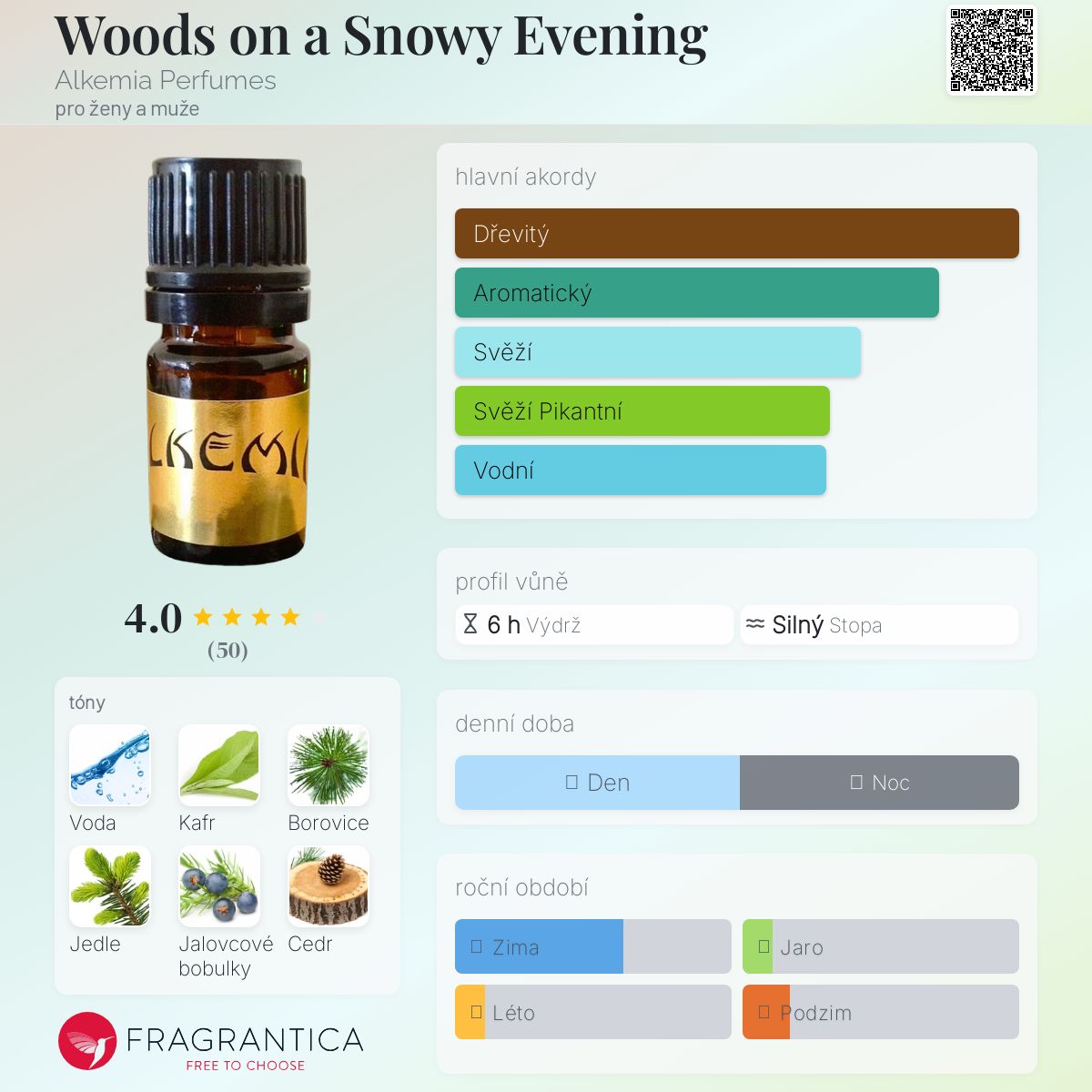 Woods on a Snowy Evening podle Alkemia Perfumes je Woody Aromatic vůně pro ženy a muže. Woods on a Snowy Evening byl/a uveden/a v roce 2014. "Nosem" za touto vůní je Sharra Lamoureaux.
