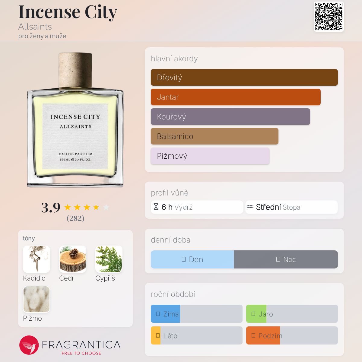 Incense City podle Allsaints je Woody Floral Musk vůně pro ženy a muže. Incense City byl/a uveden/a v roce 2018.