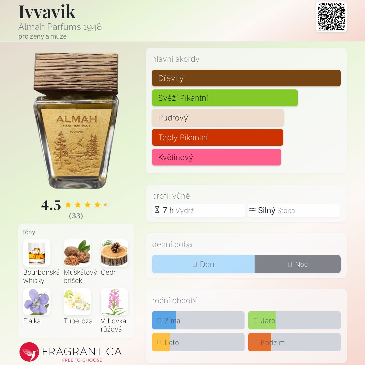 Ivvavik podle Almah Parfums 1948 je vůně pro ženy a muže. Ivvavik byl/a uveden/a v roce 2019. "Nosem" za touto vůní je Jordi Magrans.