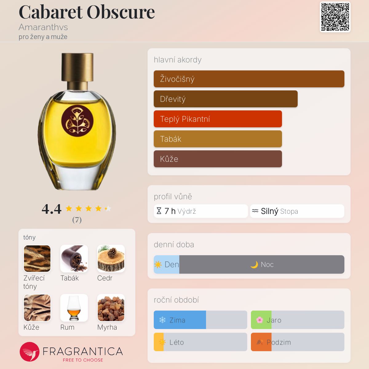 Cabaret Obscure podle Amaranthvs je vůně pro ženy a muže. Cabaret Obscure byl/a uveden/a v roce 2020.