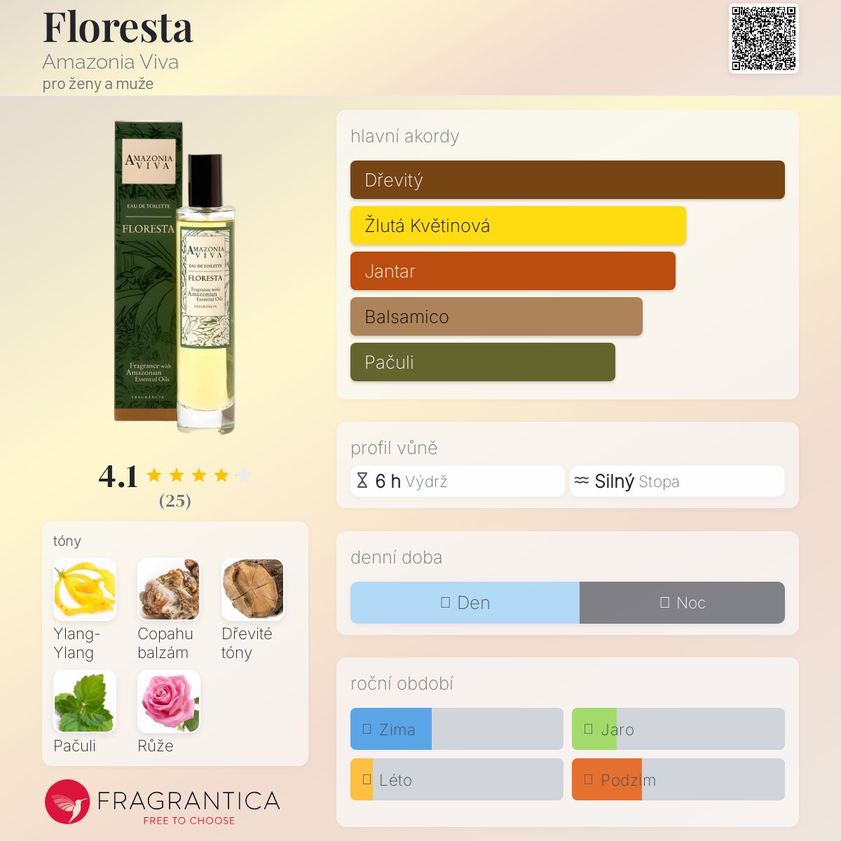 Floresta podle Amazonia Viva je Floral Woody Musk vůně pro ženy a muže. Floresta byl/a uveden/a v roce 2013.