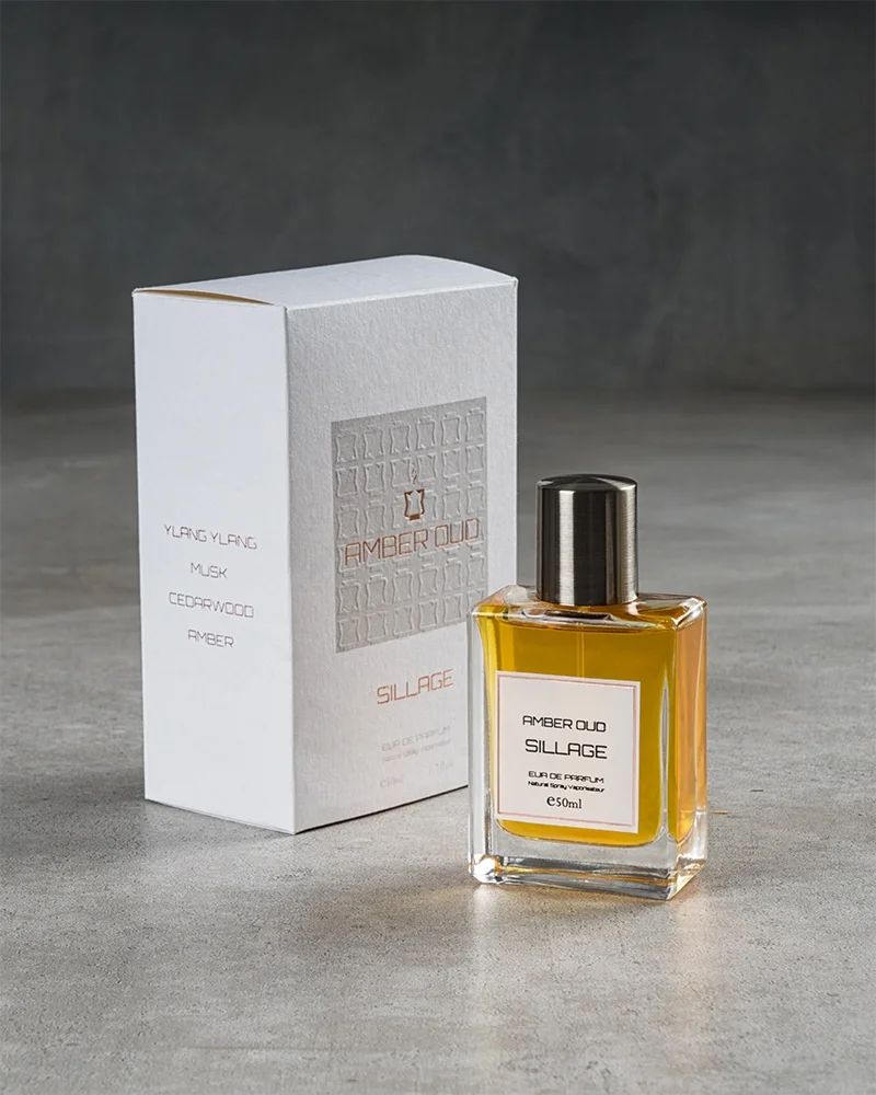 Sillage podle Amber Oud je Floral Woody Musk vůně pro ženy a muže. Sillage byl/a uveden/a v roce 2017. "Nosem" za touto vůní je Saud Malallah. Vrchní tóny jsou Ylang-Ylang a Fialka; střední tóny jsouJantar (ambra), Kadidlo a Labdanum ; základní tóny jsou Pižmo, Cedr a Vetiver.