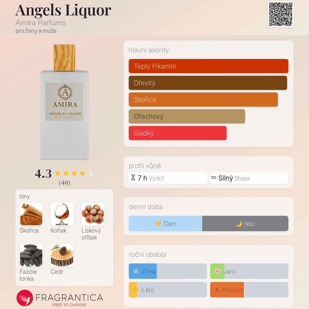 Angels Liquor podle Amira Parfums je Orientální Vanilla vůně pro ženy a muže. Angels Liquor byl/a uveden/a v roce 2022. Vrchní tón je Koňak ; střední tóny jsouSkořice a Lískový oříšek ; základní tóny jsou Fazole tonka a Cedr.