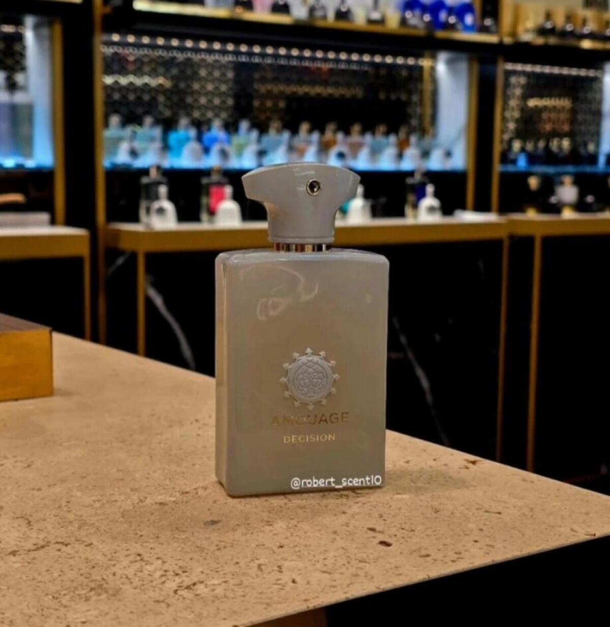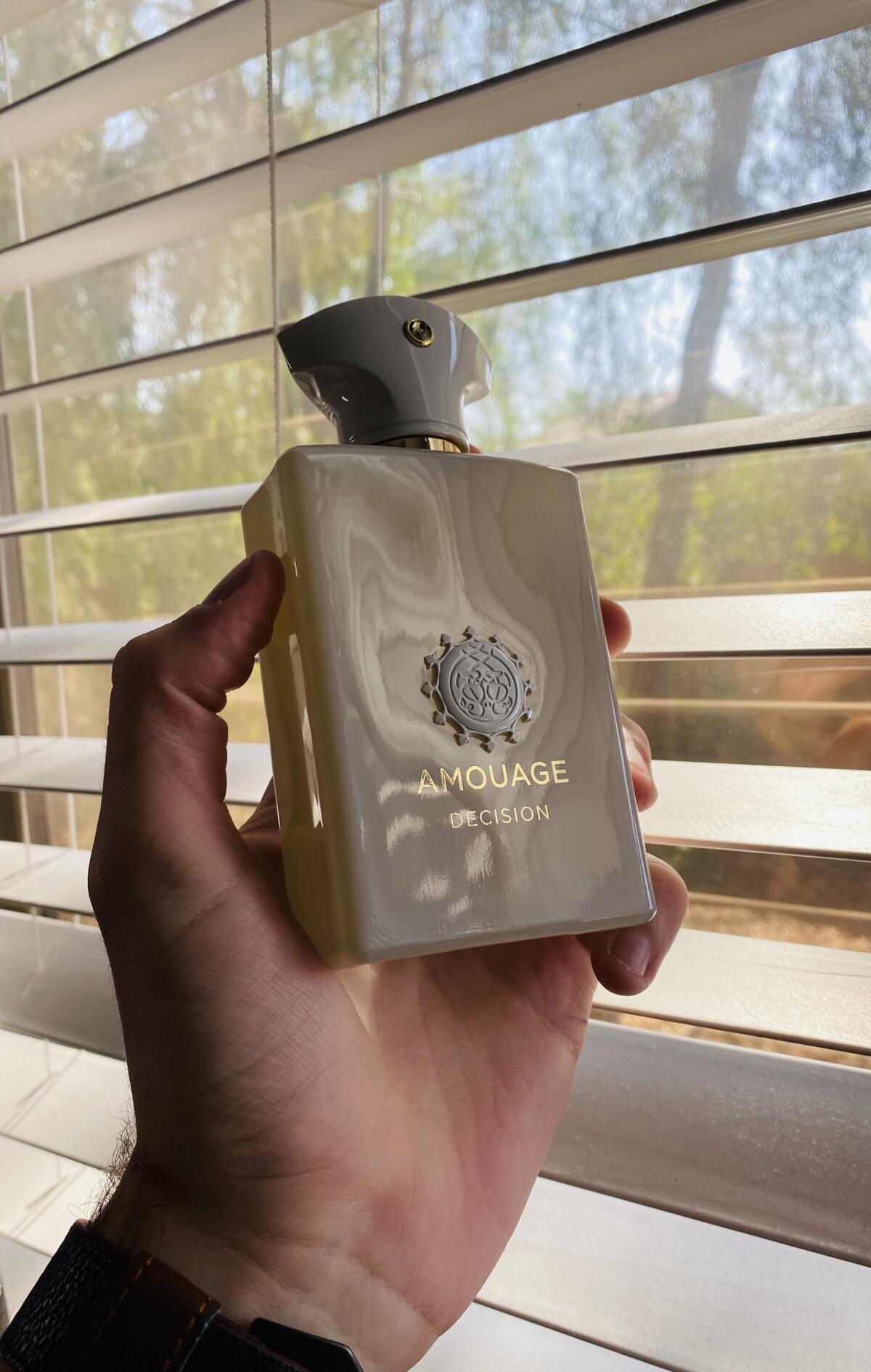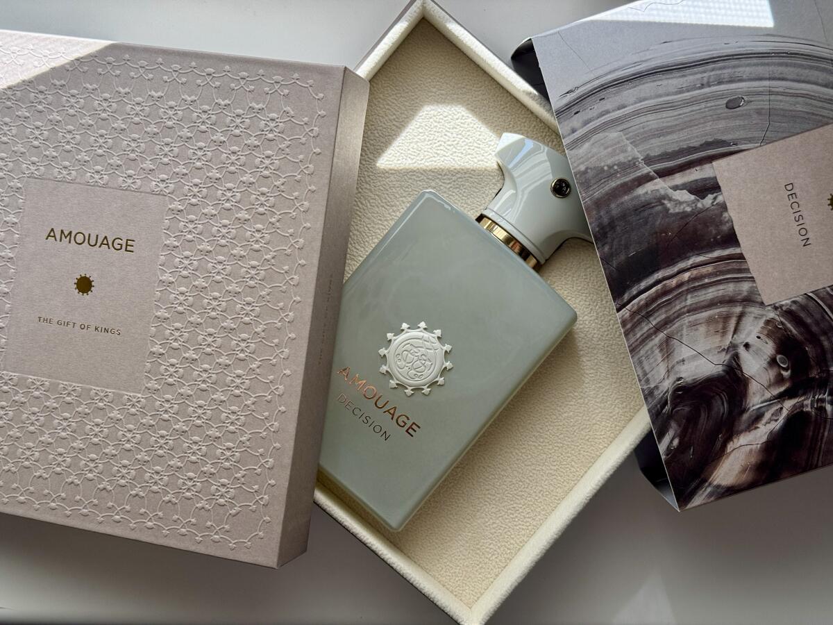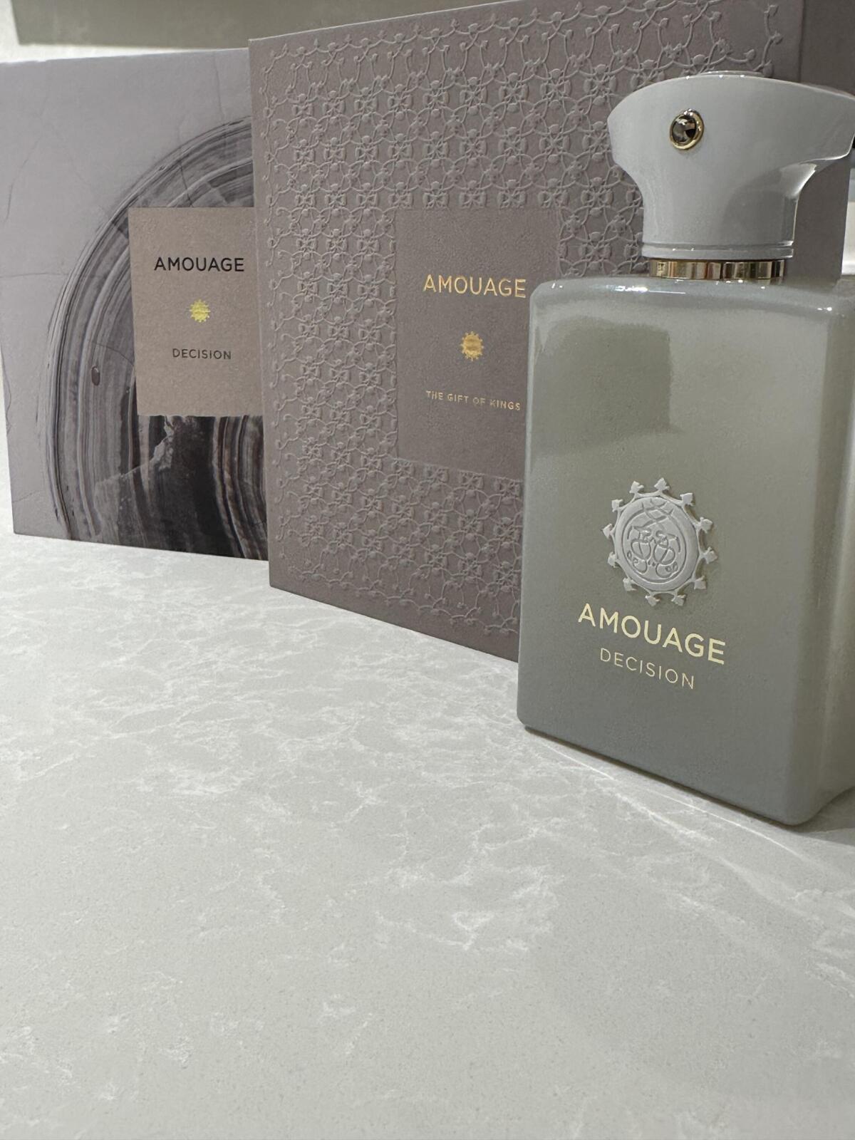 Decision podle Amouage je Woody Aromatic vůně pro ženy a muže. Toto je nová vůně. Decision byl/a uveden/a v roce 2025. "Nosem" za touto vůní je Quentin Bisch. Vrchní tóny jsou Kardamom, Bergamot a Růžový pepř; střední tóny jsouKadidlo, Jalovcové bobulky a Myrha ; základní tóny jsou Vanilka, Cedr a Pačuli.