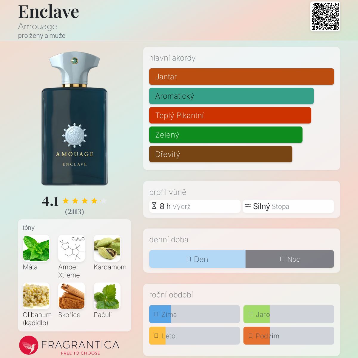 S vůní Enclave vydala značka Amouage skutečný magnet na komplimenty. Je zajímavá pro začátečníky ve světě niche díky své líbivosti, ale vůně má i dostatečnou komplexnost pro zkušené nosy. Vůni vám mohu doporučit, patří k tomu nejlepšímu od Amouage!
