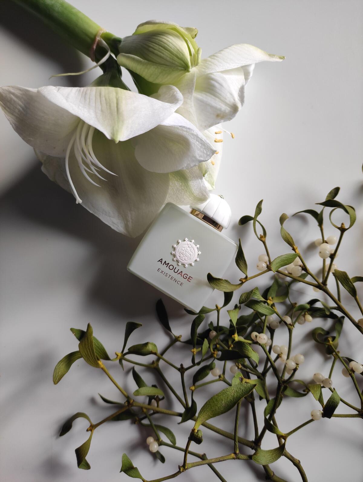Existence podle Amouage je Orientální Floral vůně pro ženy a muže. Toto je nová vůně. Existence byl/a uveden/a v roce 2025. "Nosem" za touto vůní je Quentin Bisch. Vrchní tóny jsou Aldehydy, Konvalinka a Růže; střední tóny jsouKadidlo, Mystikal a Labdanum ; základní tóny jsou Bílé pižmo, Benzoin a Ambra.