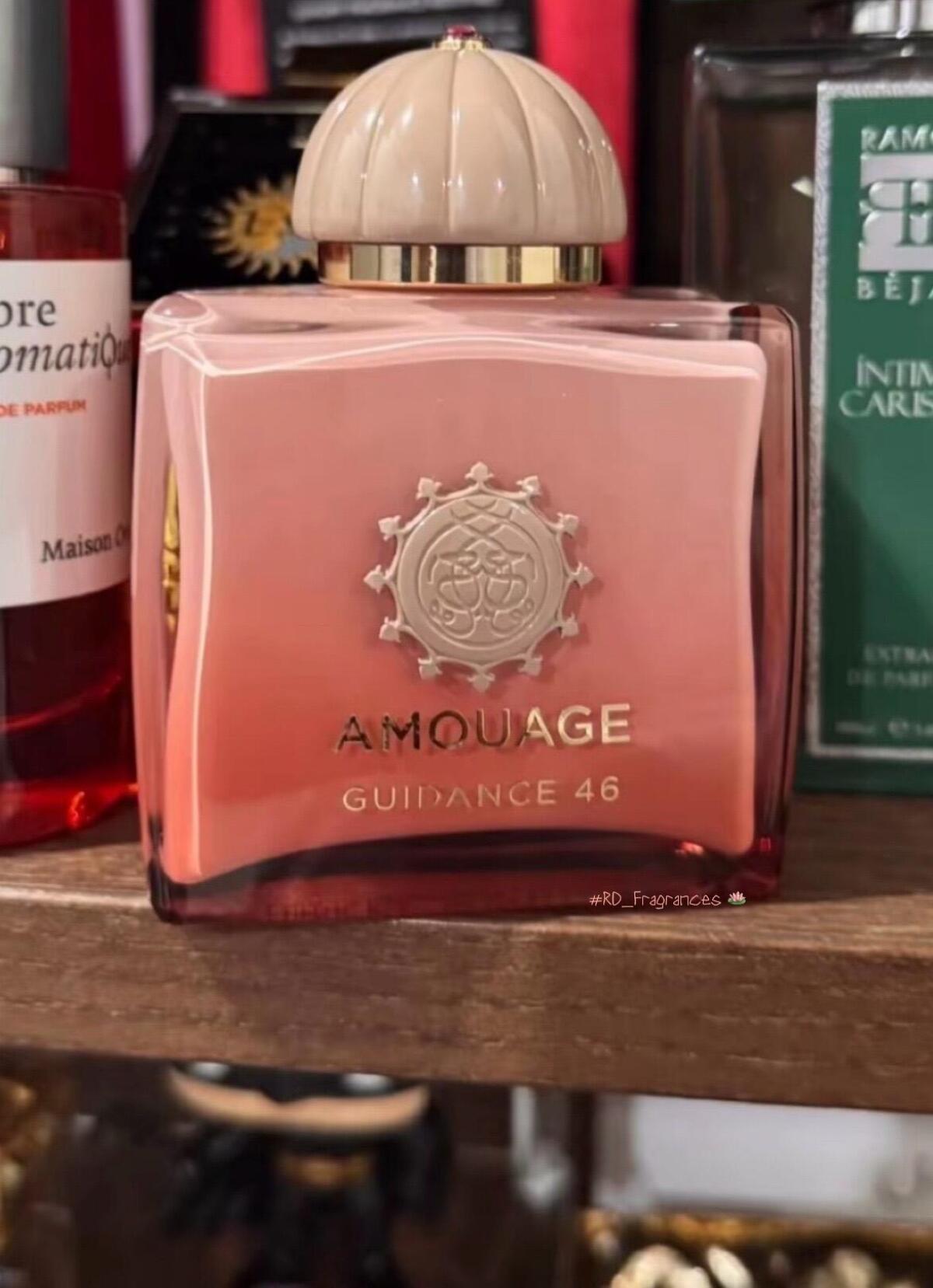 Guidance 46 podle Amouage je Orientální Floral vůně pro ženy a muže. Toto je nová vůně. Guidance 46 byl/a uveden/a v roce 2024. "Nosem" za touto vůní je Quentin Bisch. Vrchní tóny jsou Růžová voda, Hruška, Lískový oříšek, Hořká mandle, Kadidlo a Růžový pepř; střední tóny jsouRůže, Vonokvětka, Šafrán a Jasmín Sambac ; základní tóny jsou Santalové dřevo, Dřevo akigala, Vanilka, Ambrette (přírodní pižmo), Georgywood, Ambra, Labdanum a Cypriolový olej.