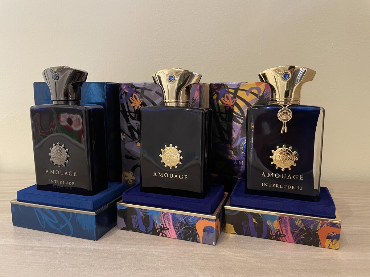 Každopádně v roce 2015 v zimě jsem slyšela toto mistrovské dílo od své kamarádky perfmaniacella s velkým P, byla jsem od tohoto tématu dost daleko, a to natolik, že jsem v zimě nosila pouze Eisenberg J'Ose, v létě Allure Home Sport eau Extreme, občas jsem se vyděsila z vůní své kamarádky a z jeho praskajících poliček od nejrůznějších lahviček)). Fordy s Jo Malone, Penhaligons s nejrůznějšími butikovými Chanely a tak dále a tak dále, když jsem zjistila, kolik to stojí, cítila jsem jakousi disonanci, měla jsem jinou šlichtu, oblečení a tenisky))), takže byl ze mě bezradný, když zjistil, že jsem si koupila tenisky za 30 tisíc, já z něj byla bezradná, když jsem zjistila, že si za stejnou cenu koupil parfém. No a jednoho zimního dne jsem na něm slyšela tuhle vůni a byla jsem prostě ohromená, tak nějak to vyčnívalo na pozadí všeho, co jsem od něj slyšela, měla jsem wow efekt, jako by se ve mně něco otřáslo, chtěla jsem to slyšet a slyšet - to Interlude, u mě to bylo až když jsem testovala Gucci Envy a YSL M7, v mládí, několikrát jsem ho aplikovala na návštěvě u kamarádky maniačky)) a sjela se jen z jeho zvuku, ale buď jsem byla moc chamtivá, abych si ho koupila, nebo jsem ho v té době nemohla sehnat, nebo jsem prostě nebyla tak zapálená pro parfémy obecně, pořád jsem nosila něco z luxusu, pak CDG Wonderwood , pak Dsquared He Wood Rocky, a před pár lety jsem jako - jak to říct)))))) rozhodně nemám za zlé svému příteli )))) , ale jeho vyprávění o parfumérech, vůních, notách a niche značkách obecně, stejně jako pasování do podoby odlitků sehrálo roli, začala jsem sledovat všemožné blogerky na YouTube , zaregistrovala jsem se zde na Fragrantice ))))) celkově teď mám 20 vůní a asi dalších 50 kusů nejrůznějších odlitků a miniatur, já už než někam vyrazím - něco, můžu si stoupnout ke svému stylagiku a přemýšlet, v jaké vůni mi to tady v tom kabátě půjde)))) můžu za den aplikovat vůni tři)))) a cítím, jak mě to k ní táhne. Jest napsal o vůni, napsal životopis... ))))). Obecně jsem se tu dočetla, že Amouage byla přeformulována atd, nový výrobek není stejný... Objednala jsem si flakonek a slyšela jsem nádherný, krásný oud, kadidlo, pepř, nádherné uzené sladké švestky, takovou tu kouzelnou kouřovost a hned jsem si objednala flakonek, dnes mi přišel a jsem šťastná jako dítě, teď jsem v něm, je stejně krásný jako před 8 lety, je prostě kouzelný, přeji všem štěstí a dobro, vše nejlepší, nejkrásnější vůně a nádherné pocity!!!!