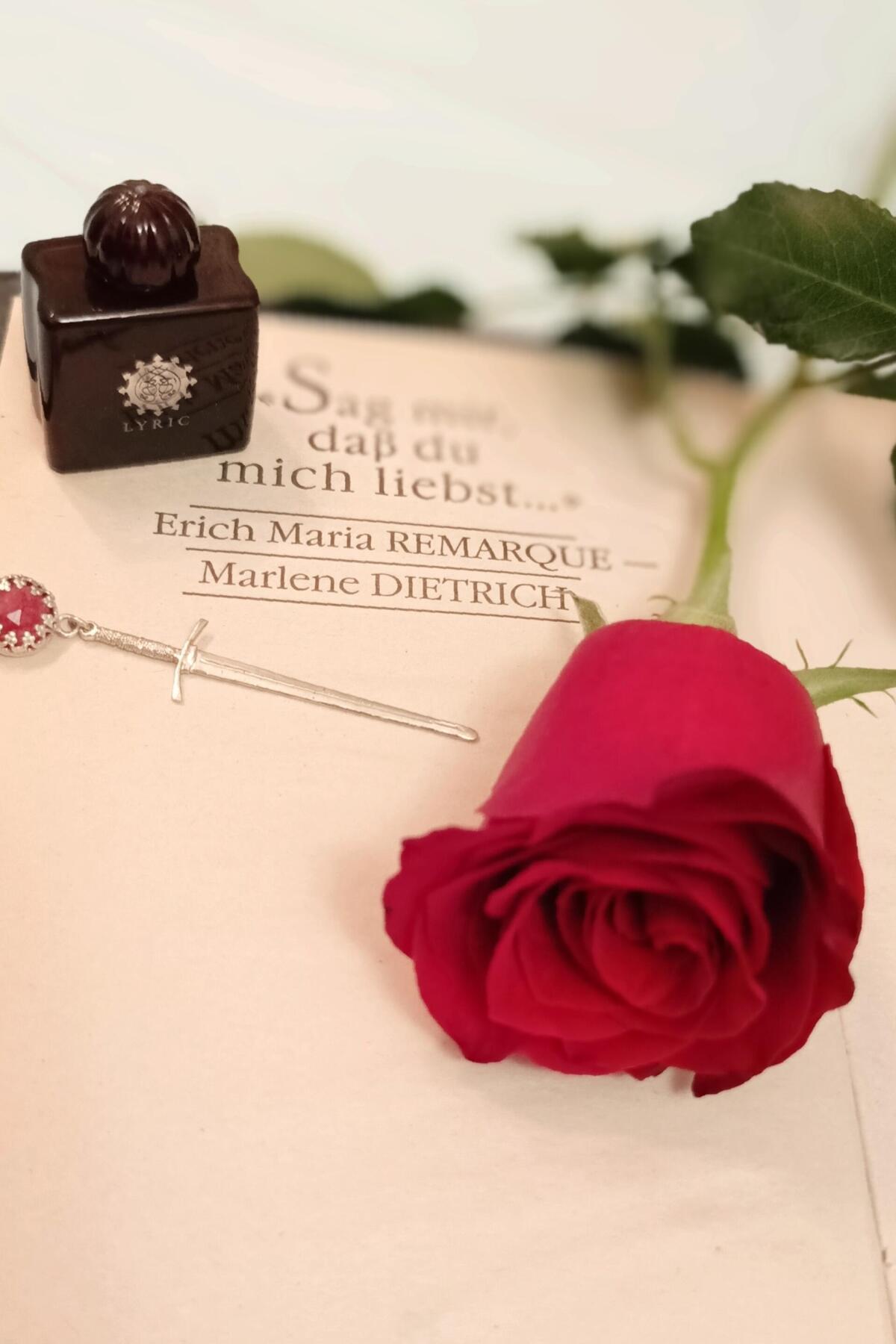 Lyrika je hořká růže, pro mě je to Vasco's Sally, daří se jí popsat cestu duše, a proto může bolet. Nastříkám si ji pouze na zápěstí -sprej, který rozdělím na dvě části- a jsem jí zcela zahalena, efekt středověkého brnění. Růžová protagonistka, nikdy odměřená, spíše hřejivá a kořeněná, tak horká a hořká andělikou, že působí jako žluč, která občas vyvrhne hněv. Kouřová, neslunečná růže, ale zároveň plná a velmi přívětivá, osamělá rudá růže, odtržená od růžové zahrady, která dál pulzuje životem.