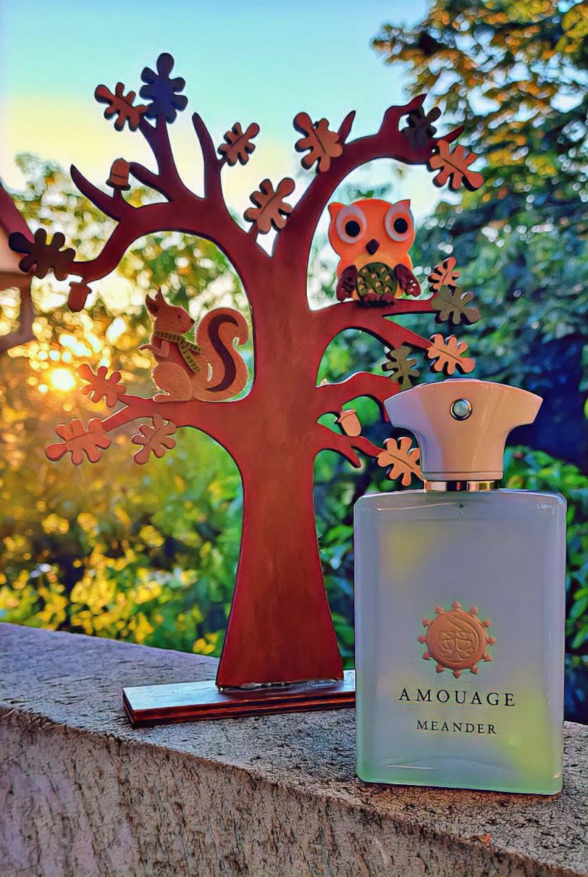Představit si, že by Amouage mohla takto vonět, by mě dříve ani nenapadlo. Ale zároveň je jemná a delikátní, což je svým způsobem plus. Víceméně se charakter vůně odhalí až v samotném základu. "Meander" je poměrně jednoduchý, usadí se do vůně krémového máslového krému, santalové dřevo jsem tam nenašla, máslový krém - ano. Téměř úplně se opakuje nová vůně Aqua Kenzo Pour Homme z roku 2018 s vlnkou na obalu - stejná nesmyslná přeslazená sladkost. To, co kdysi udělal L'Homme Idéal pro Guerlain, přišlo pro Amouage Meander - otrocky opsaný.