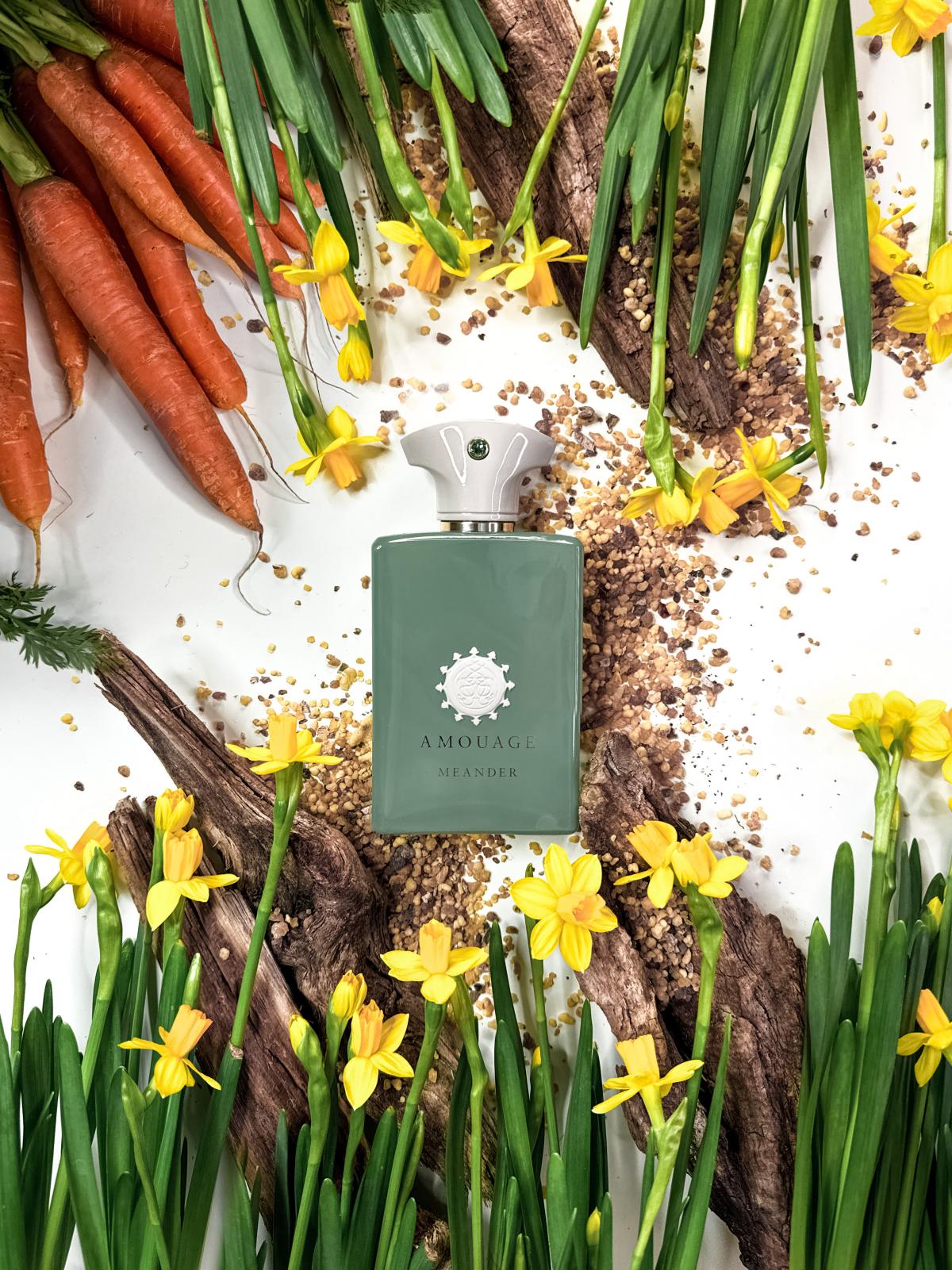 Meander podle Amouage je Orientální Fougere vůně pro ženy a muže. Meander byl/a uveden/a v roce 2020. "Nosem" za touto vůní je Mackenzie Reilly. Vrchní tóny jsou Olibanum, Semena mrkve, Černý pepř a Růžový pepř; střední tóny jsouOrris, Cypriolový olej, Narcis a Růže ; základní tóny jsou Santalové dřevo, Olibanum a Vetiver.