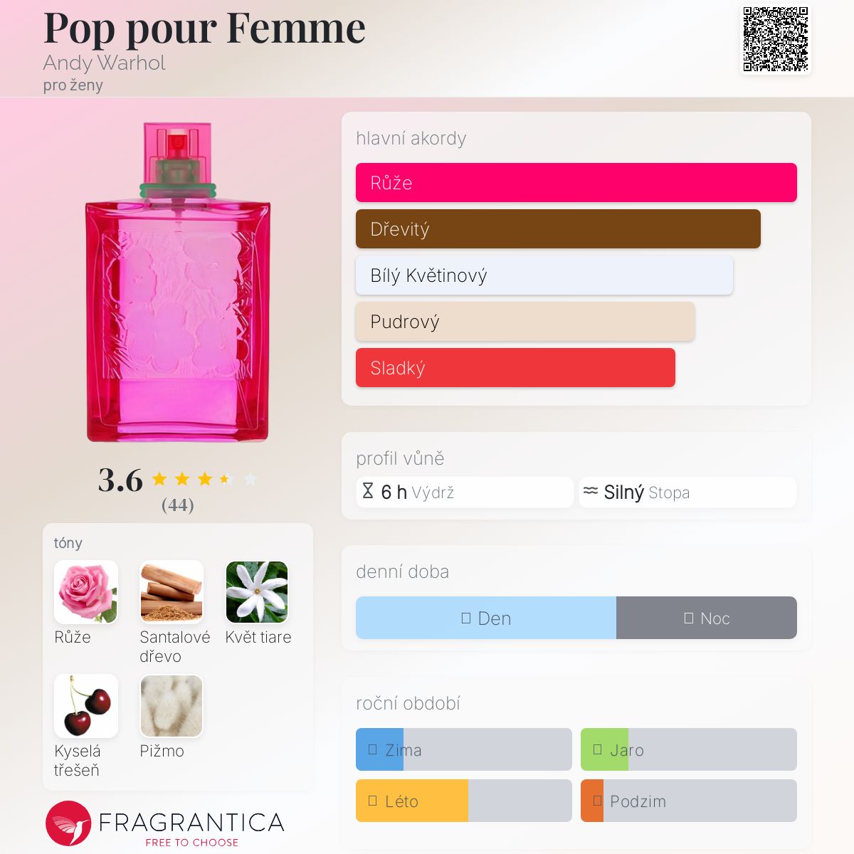 Pop pour Femme podle Andy Warhol je Orientální Floral vůně pro ženy. Pop pour Femme byl/a uveden/a v roce 2005. "Nosem" za touto vůní je Michel Almairac.