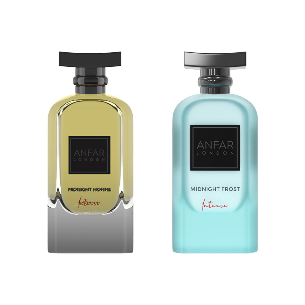 Midnight Homme Intense podle Anfar London je Aromatic Fougere vůně pro muže. Midnight Homme Intense byl/a uveden/a v roce 2023. "Nosem" za touto vůní je Abdullah Anfar. Vrchní tóny jsou Grapefruit, Kardamom, Skořice a Muškátový oříšek; střední tóny jsouLevandule, Bobkový list a Jasmín ; základní tóny jsou Santalové dřevo, Jantar (ambra), Pačuli a Vetiver.
