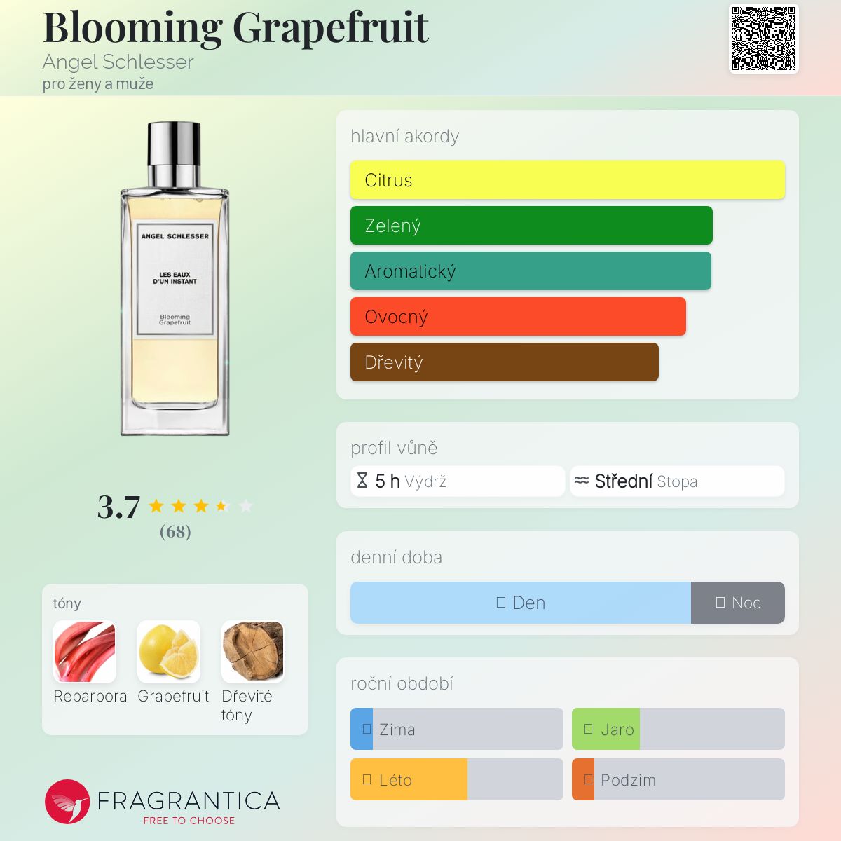 Blooming Grapefruit podle Angel Schlesser je Citrus Aromatic vůně pro ženy a muže. Blooming Grapefruit byl/a uveden/a v roce 2020. "Nosem" za touto vůní je Marie Salamagne. Vrchní tón je Grapefruit ; střední tón jeRebarbora ; základní tón je Dřevité tóny.