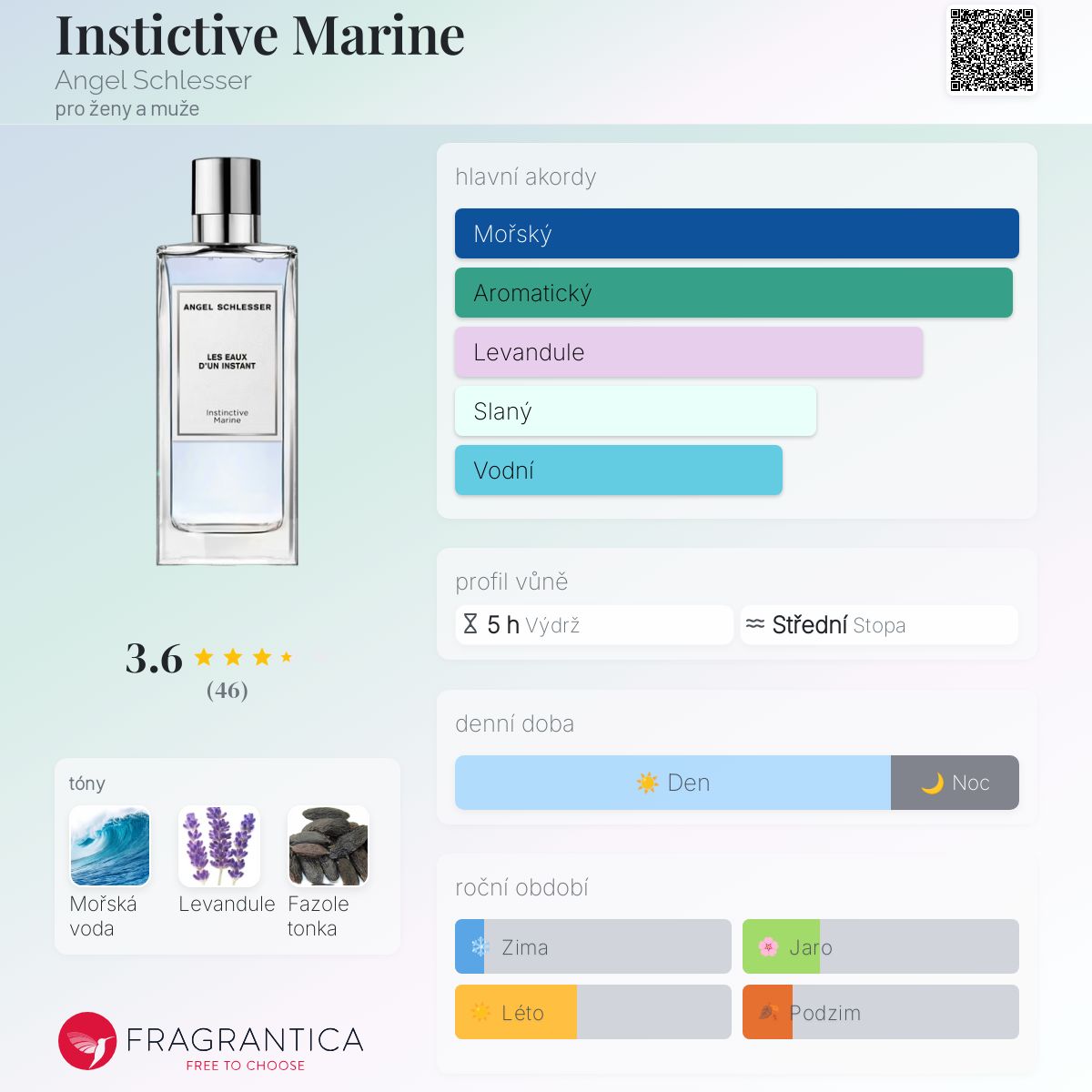 Instictive Marine podle Angel Schlesser je Aromatic Aquatic vůně pro ženy a muže. Instictive Marine byl/a uveden/a v roce 2020. "Nosem" za touto vůní je Amandine Clerc-Marie. Vrchní tón je Mořské tóny ; střední tón jeLevandule ; základní tón je Fazole tonka.