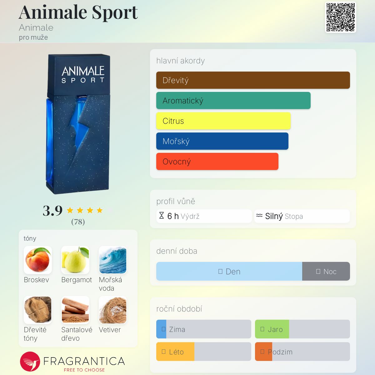 Animale Sport podle Animale je Citrus vůně pro muže. Animale Sport byl/a uveden/a v roce 2014. Vrchní tóny jsou Bergamot a Mořské tóny; střední tóny jsouBroskev a Dřevité tóny ; základní tóny jsou Santalové dřevo, Vetiver a Jantar (ambra).