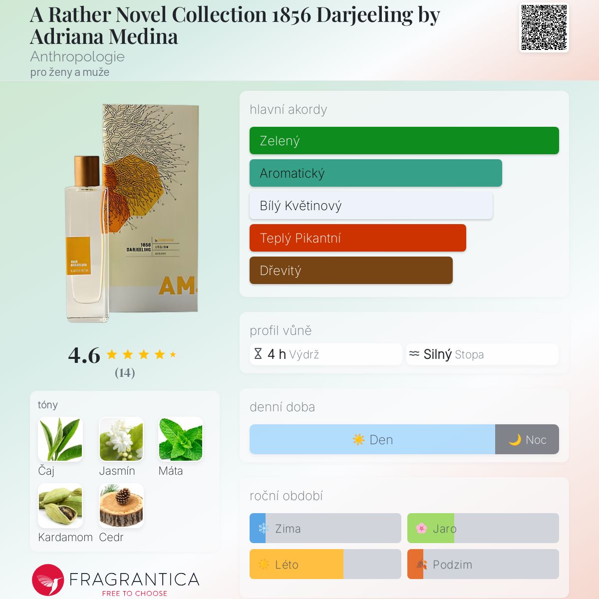 A Rather Novel Collection 1856 Darjeeling by Adriana Medina podle Anthropologie je Floral Green vůně pro ženy a muže. A Rather Novel Collection 1856 Darjeeling by Adriana Medina byl/a uveden/a v roce 2009. "Nosem" za touto vůní je Adriana Medina-Baez.