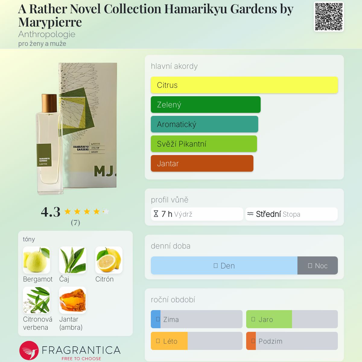 A Rather Novel Collection Hamarikyu Gardens by Marypierre podle Anthropologie je Citrus Aromatic vůně pro ženy a muže. A Rather Novel Collection Hamarikyu Gardens by Marypierre byl/a uveden/a v roce 2009. "Nosem" za touto vůní je Marypierre Julien.
