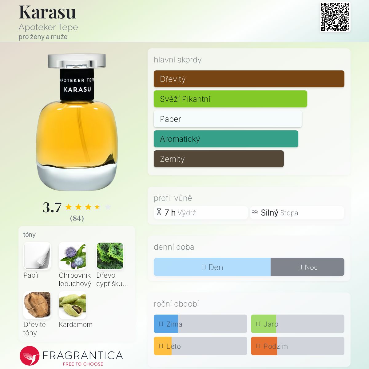 Karasu podle Apoteker Tepe je Orientální Spicy vůně pro ženy a muže. Karasu byl/a uveden/a v roce 2016. "Nosem" za touto vůní je Holladay Saltz.