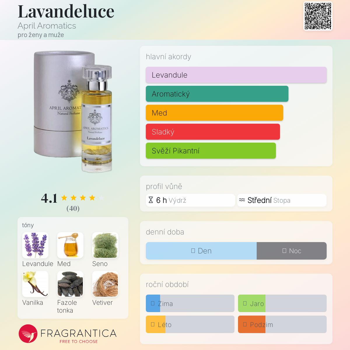 Lavandeluce podle April Aromatics je Floral vůně pro ženy a muže. Lavandeluce byl/a uveden/a v roce 2019. "Nosem" za touto vůní je Tanja Bochnig.