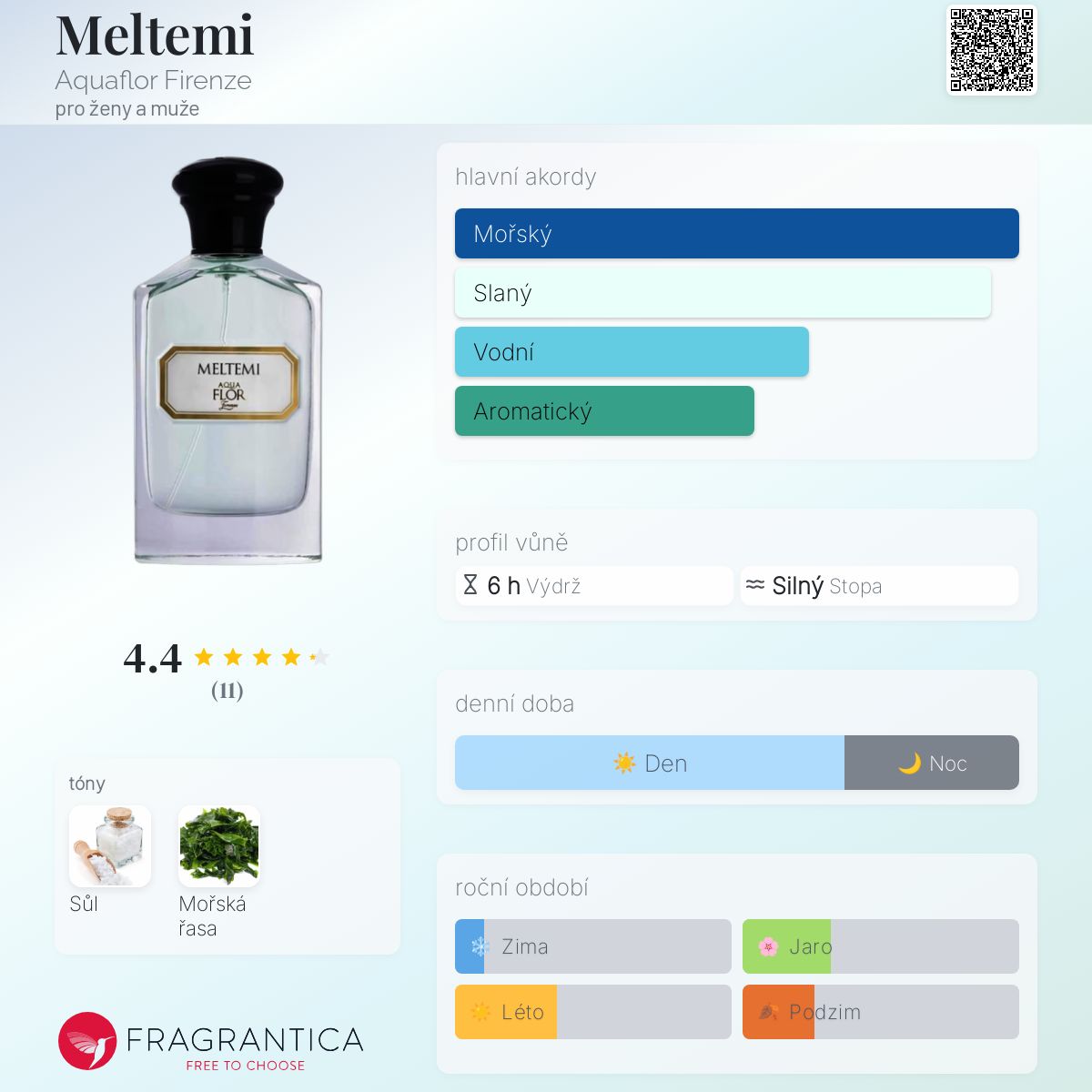 Meltemi podle Aquaflor Firenze je Aromatic Aquatic vůně pro ženy a muže. Meltemi byl/a uveden/a v roce 2016. "Nosem" za touto vůní je Sileno Cheloni.