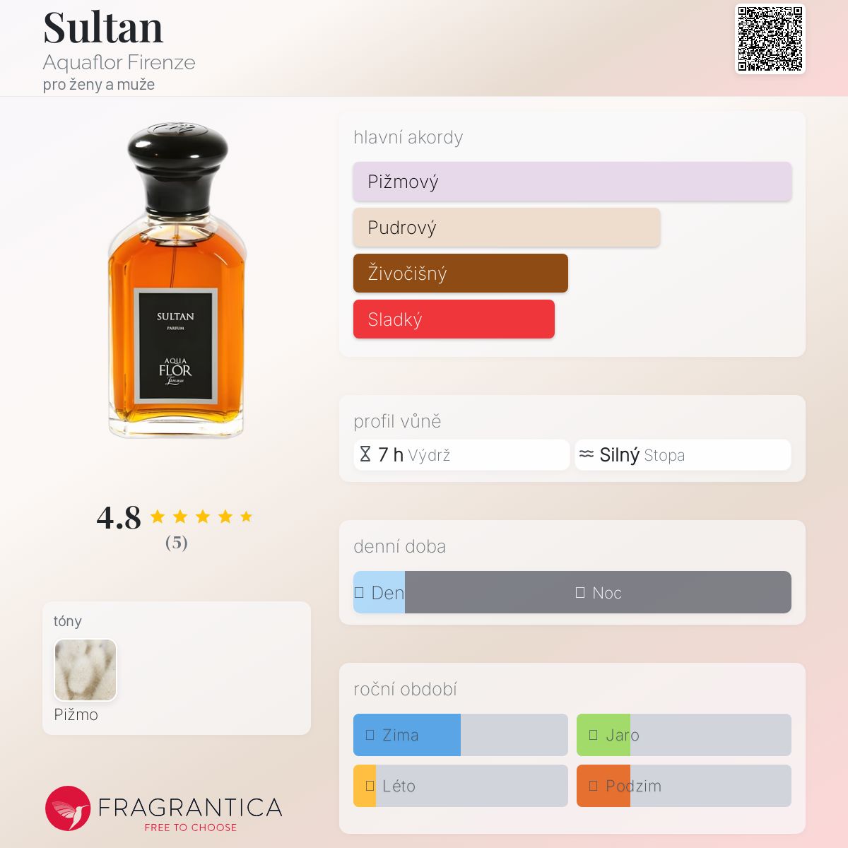 Sultan podle Aquaflor Firenze je Aromatic vůně pro ženy a muže. "Nosem" za touto vůní je Sileno Cheloni.