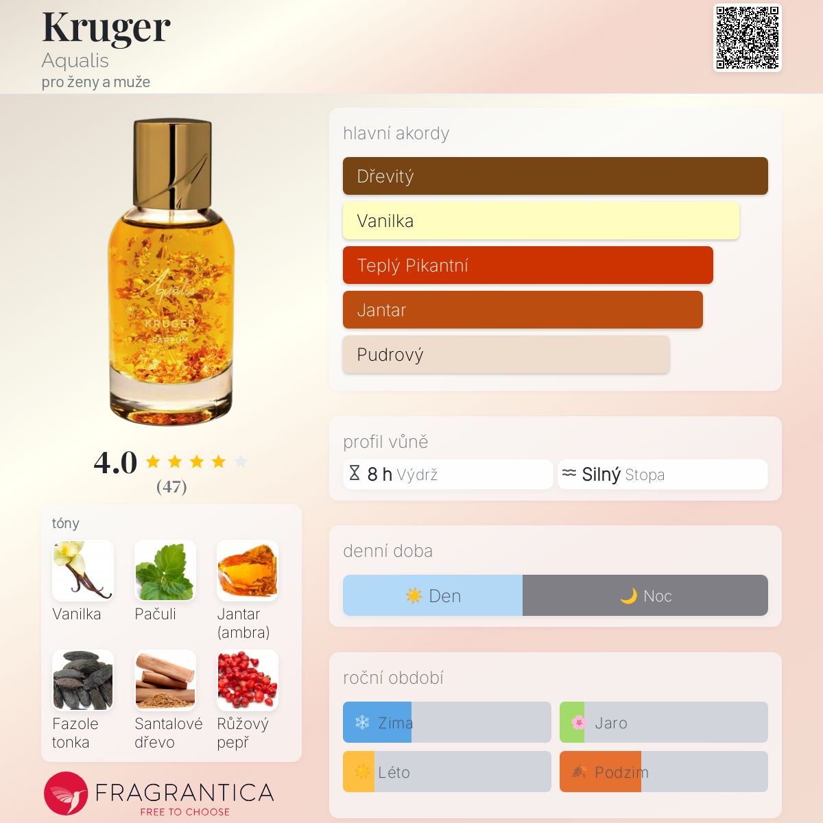 Kruger podle Aqualis je Orientální vůně pro ženy a muže. "Nosem" za touto vůní je Jean-Charles Mignon. Vrchní tóny jsou Růžový pepř a Bergamot; střední tóny jsouPačuli, Turecký růžový olej, Turecká růže, Šafrán a Papyrus ; základní tóny jsou Bourbonská vanilka, Jantar (ambra), Fazole tonka, Santalové dřevo a Bílé pižmo.