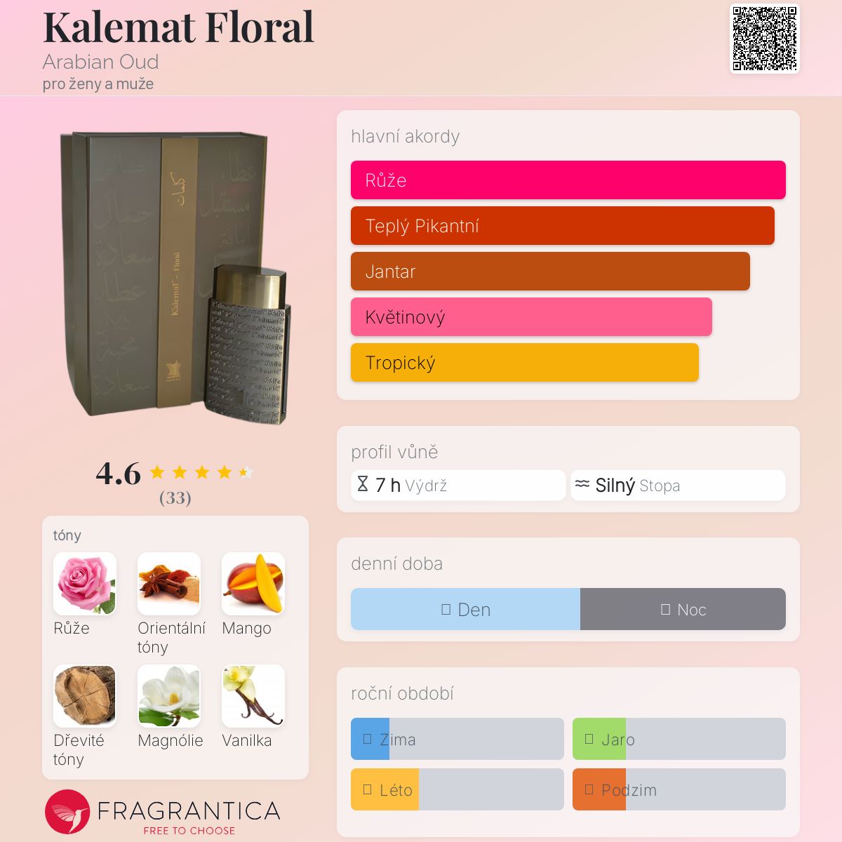 Kalemat Floral podle Arabian Oud je Orientální Floral vůně pro ženy a muže. Kalemat Floral byl/a uveden/a v roce 2013.