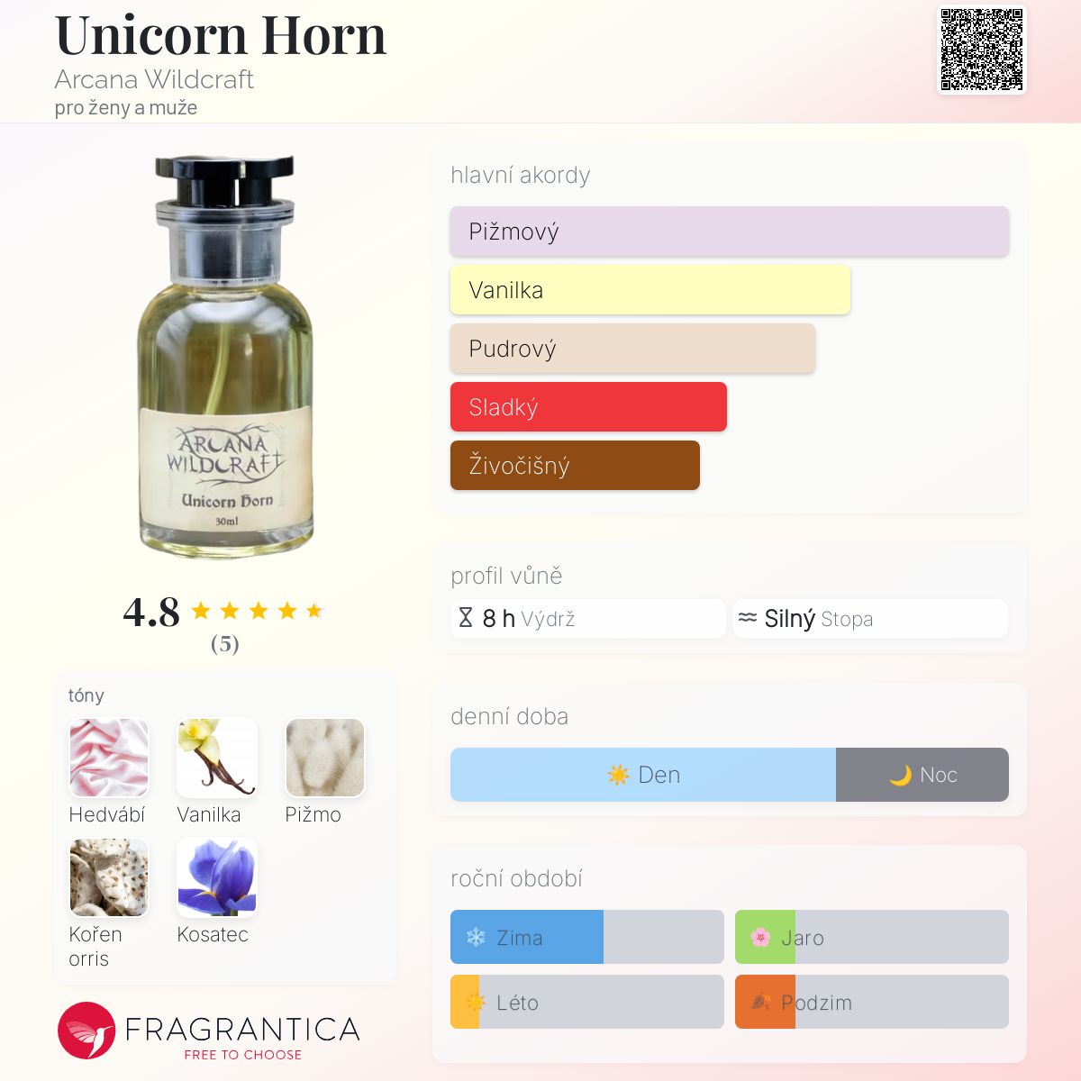 Unicorn Horn podle Arcana Wildcraft je Floral Woody Musk vůně pro ženy a muže. Toto je nová vůně. Unicorn Horn byl/a uveden/a v roce 2025.