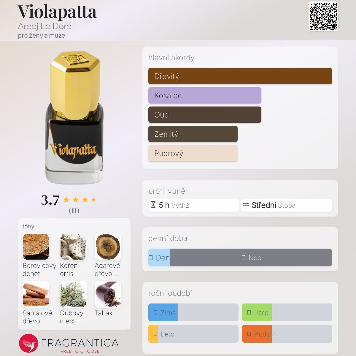 Violapatta podle Areej Le Doré je Orientální Woody vůně pro ženy a muže. Toto je nová vůně. Violapatta byl/a uveden/a v roce 2025.