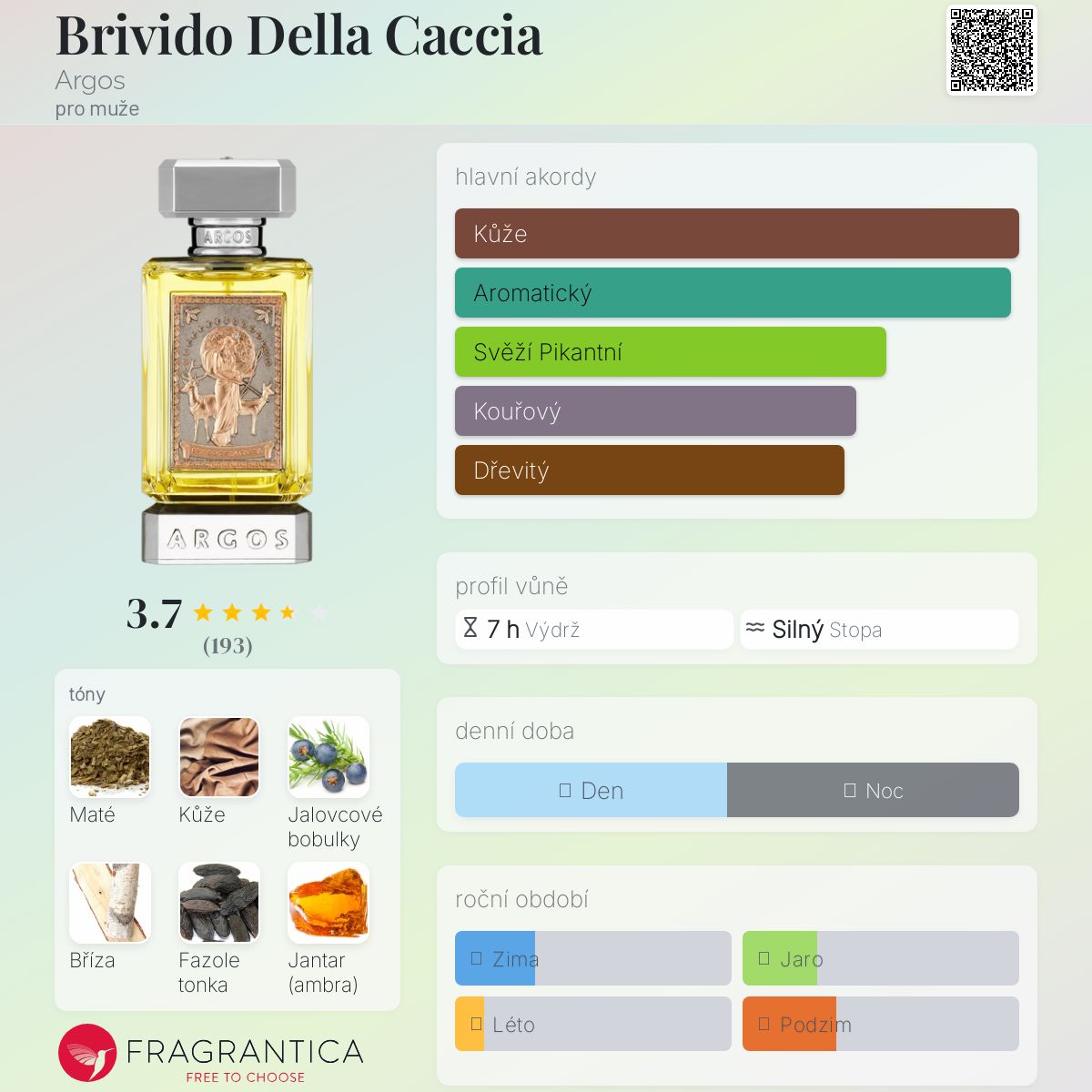 Brivido Della Caccia podle Argos je Orientální Woody vůně pro muže. Brivido Della Caccia byl/a uveden/a v roce 2019. "Nosem" za touto vůní je Christian Petrovich.