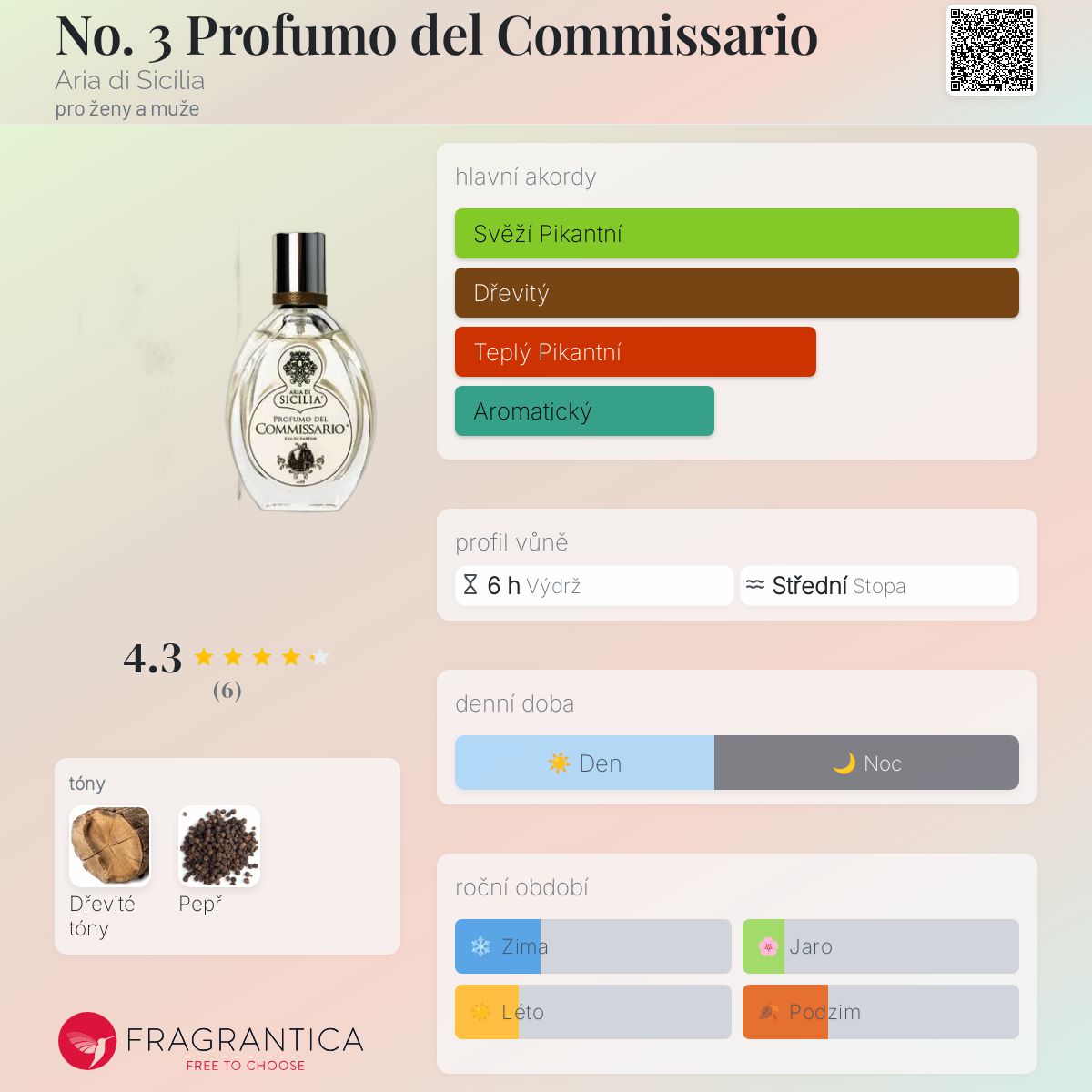 No. 3 Profumo del Commissario podle Aria di Sicilia je Woody Spicy vůně pro ženy a muže. No. 3 Profumo del Commissario byla spuštěna během 2010.