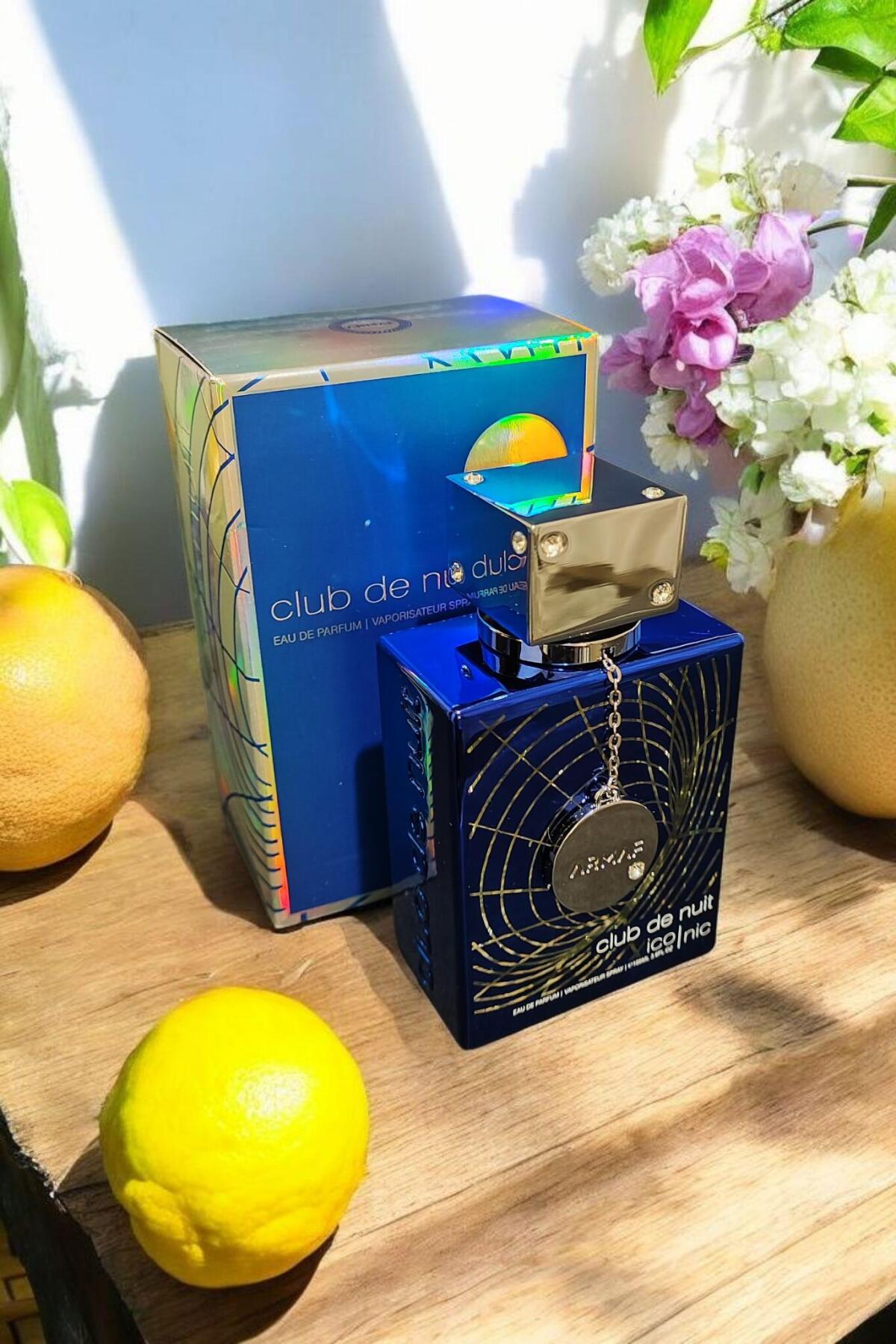 Club de Nuit Blue Iconic podle Armaf je vůně pro muže. Club de Nuit Blue Iconic byl/a uveden/a v roce 2022. Vrchní tóny jsou Grapefruit, Citrón, Máta, Růžový pepř a Koriandr; střední tóny jsouZázvor, Meloun, Jasmín a Muškátový oříšek ; základní tóny jsou Dřevité tóny, Kadidlo, Santalové dřevo, Jantar (ambra), Cedr, Pačuli a Labdanum.