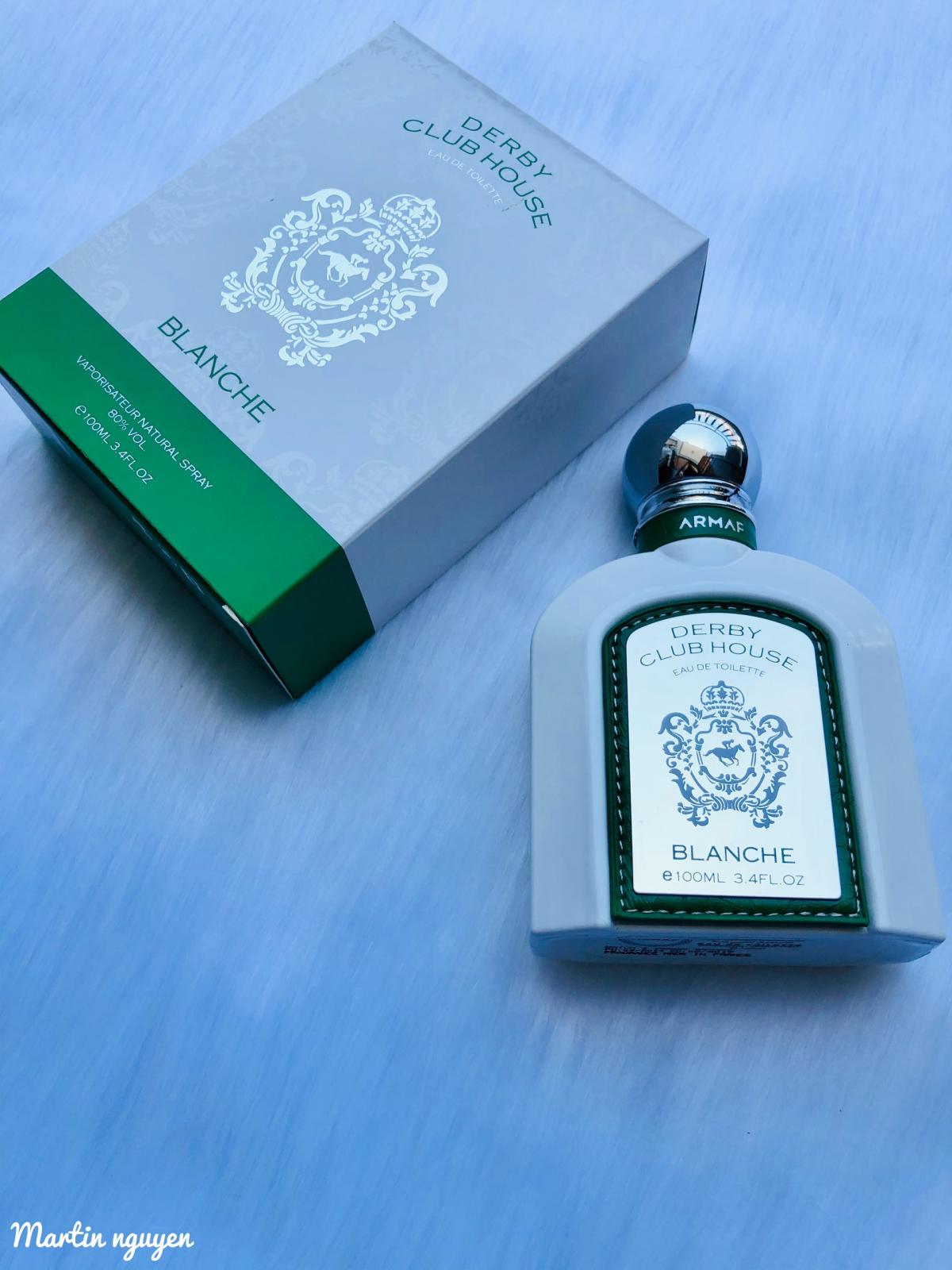 Derby Club House Blanche podle Armaf je Aromatic Aquatic vůně pro muže. Vrchní tóny jsou Vodní tóny, Bergamot a Pomeranč; střední tóny jsouZelený čaj a Černý rybíz ; základní tóny jsou Pižmo, Galbanum a Santalové dřevo.